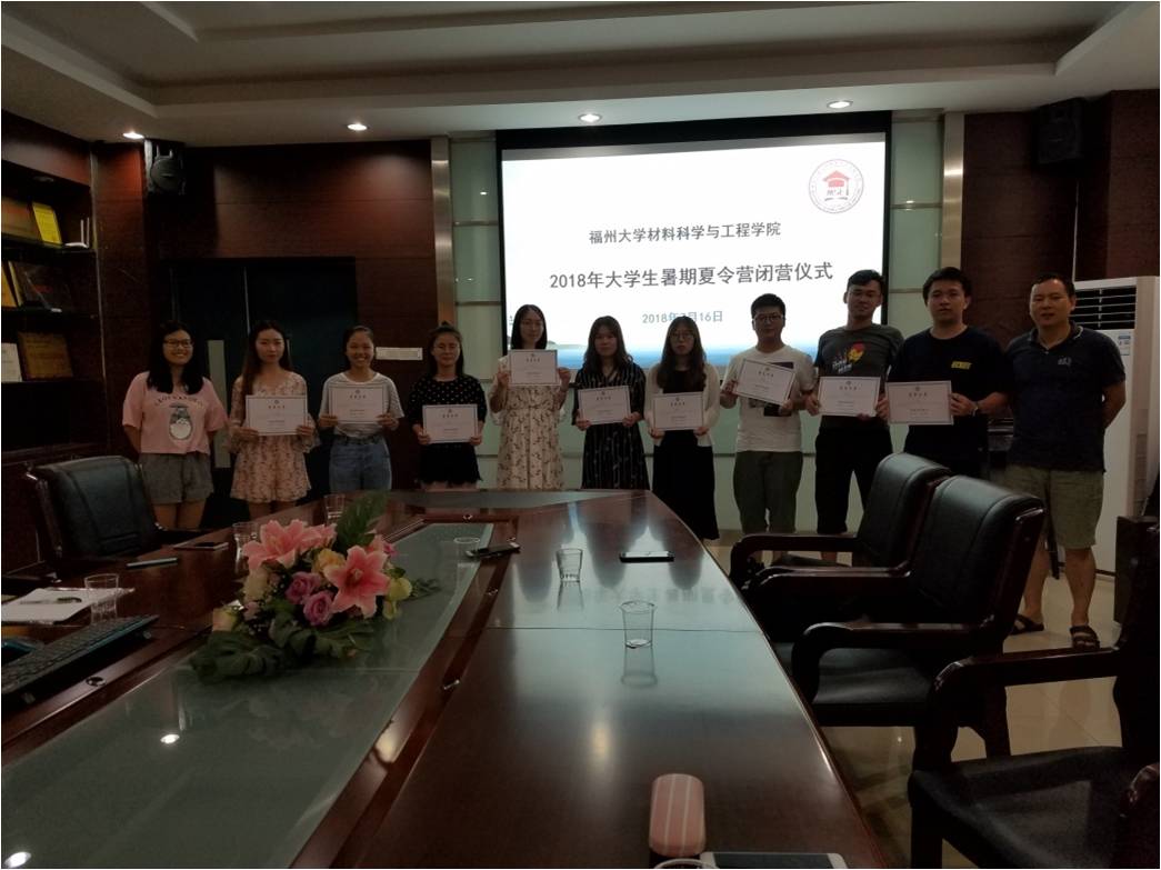 首先,汪炳叔副教授感谢大家来参加本次夏令营,向学员了解他们的近况,是否习惯这里的饮食和适应气候,还有他们对福大的印象以及需要改进地方,接下来大家踊跃发言,积极与老师们互动,学员们觉得福大很美很大,学习气氛浓厚,空气质量优良,是一个理想中的大学。大家对餐厅里的食物赞不绝口,认为福州气候宜人。通过三天的学习和参观,学员们积极的评价福大的教师和蔼可亲,平易近人,学长学姐与人和善,更进一步加深对福大的了解和喜爱。学员们也指出一些不足的地方,比如学员之间交流互动不足等。学院相关负责老师将其一一记录,并承诺下一届多举办交流活动,促进学员们交流学习。最后,汪炳叔副教授向九位营员颁发优秀营员证书,大家一起合影留念。闭营仪式在一片欢快和愉悦的气氛中落下帷幕。