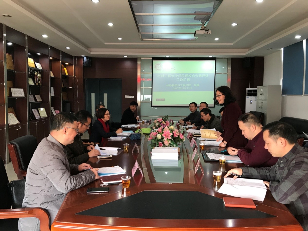 会议伊始,院长詹红兵教授介绍了专家组成员与学校出席人员,并代表学院对莅临我校指导专业学位授权点的建设工作表示热烈欢迎和衷心感谢;随后,专家组认真听取由分管副院长张腾教授汇报的材料工程专业学位授权点合格评估的自评工作情况。另外,专家组还通过查阅资料、参观实验室、与师生访谈等环节切实了解学生们专业实践的情况。