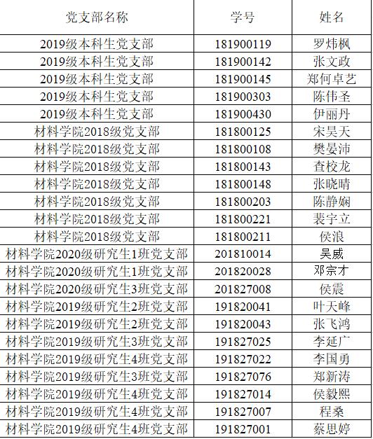 按照发展党员工作有关规定,经基层党支部推荐,成人动漫 党委于2021年3月23日备案,同意确定罗炜枫等23名同志为发展对象,选送参加校党校第236期发展对象培训班学习,现将备案名单公布如下: