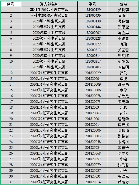 按照发展党员工作有关规定,经基层党支部推荐,成人动漫 党委于2022年3月21日备案,同意确定吴松滨等31名同志为发展对象,现将备案名单公布如下: