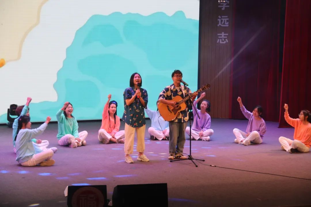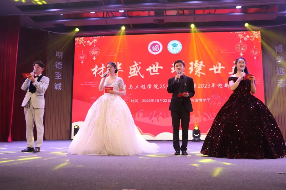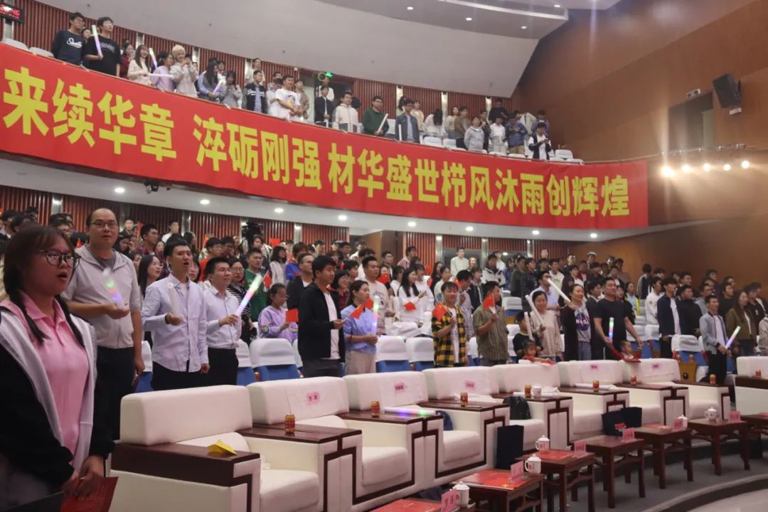 福建省妇联党组成员兼副主席占永琼院友、校统战部部长林新辉院友、校党委巡察一组组长倪朝霞院友、校离退休工作办公室主任曾忠毅院友、校教务处处长于岩老师、校关工委执行秘书长倪朝兴院友、校机关党委副书记张玉辉院友、福州新东方前途出国市场经理张密玉老师、福州新东方学校国际教育培训中心市场经理陈荣灿老师、学而思教育科技有限公司福州分校校长蒲恒春老师、好未来集团学而思校招负责人孟繁鑫老师、院党委书记罗涛老师、院党委副书记张志忠老师、副院长林梅金老师出席本次晚会,教师代表以及全体2023级学生参加。