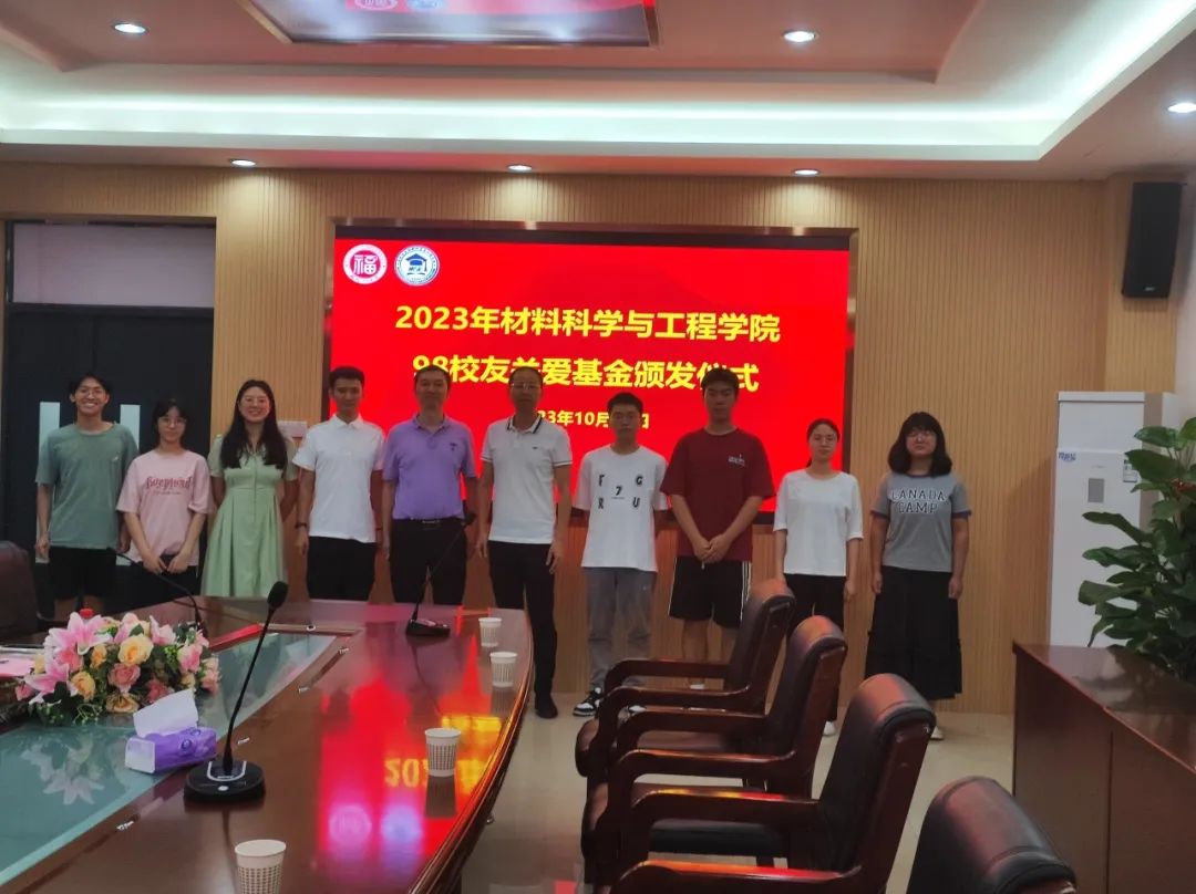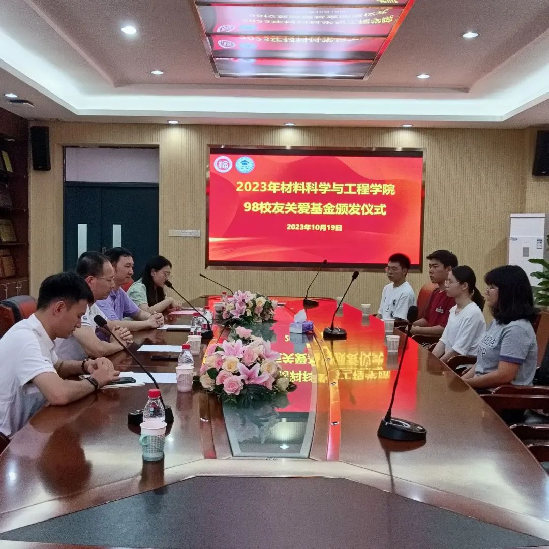 仪式伊始,葛旭东理事长与张志忠副书记共同为受助师生颁发了关爱基金,并合影留念。接着进行校友、师生座谈会,葛旭东理事长介绍了98校友关爱基金的设立初心和意义,结合自身工作及从事资助公益事业经历,强调了在校学生要以学习为重,认真学习专业知识,积极参加活动,在自立自强、增长才干和实现个人发展的过程中将爱心传递。