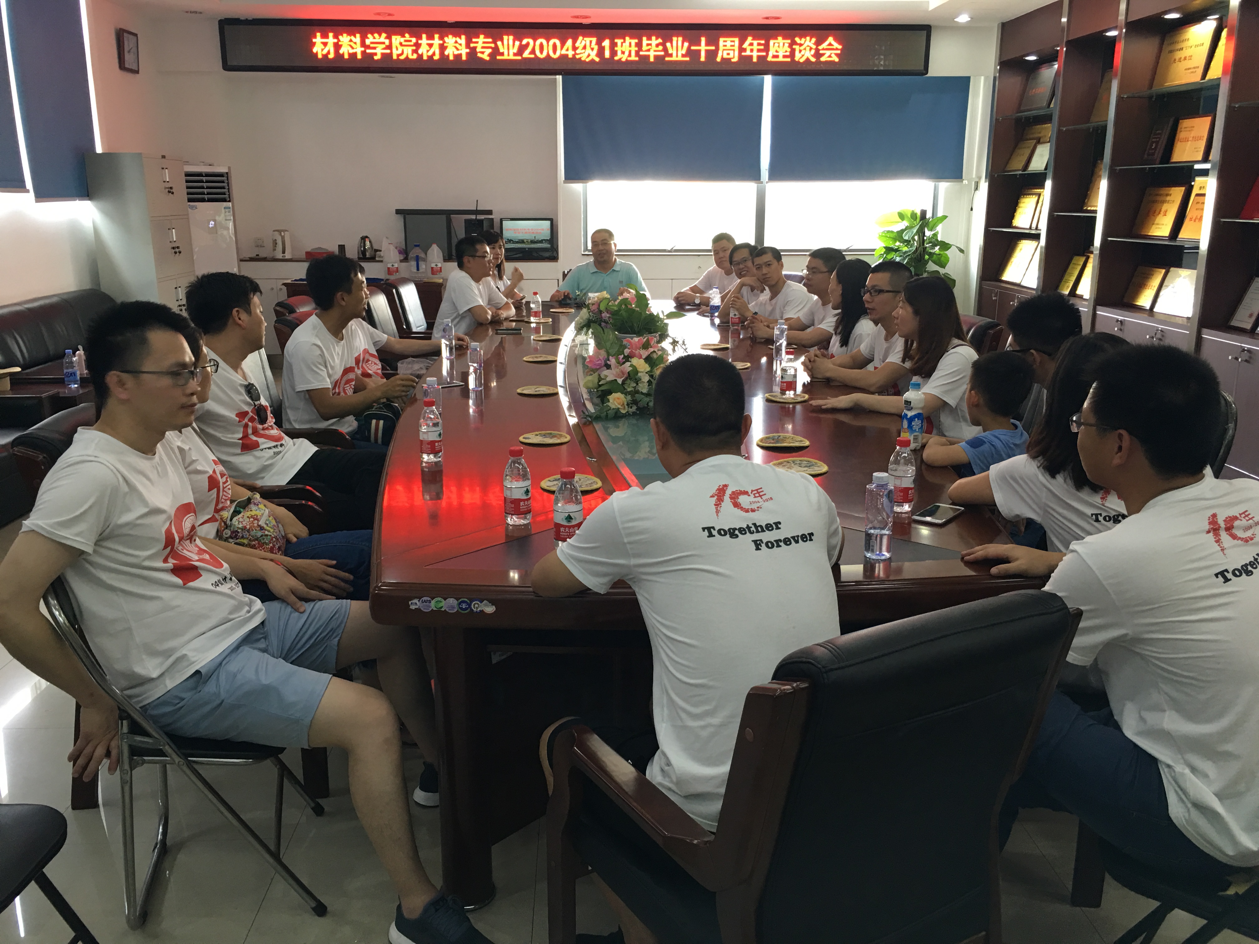 5月26日,成人动漫 材料专业2004级1班校友回到母校。为迎接校友们的到来,本次毕业十周年座谈会于嘉锡楼313会议室举行,院党委副书记王剑龙,院团委书记黄真出席此次座谈会,2004级1班校友及其家属参与了此次座谈会。会议由院党委副书记王剑龙主持。