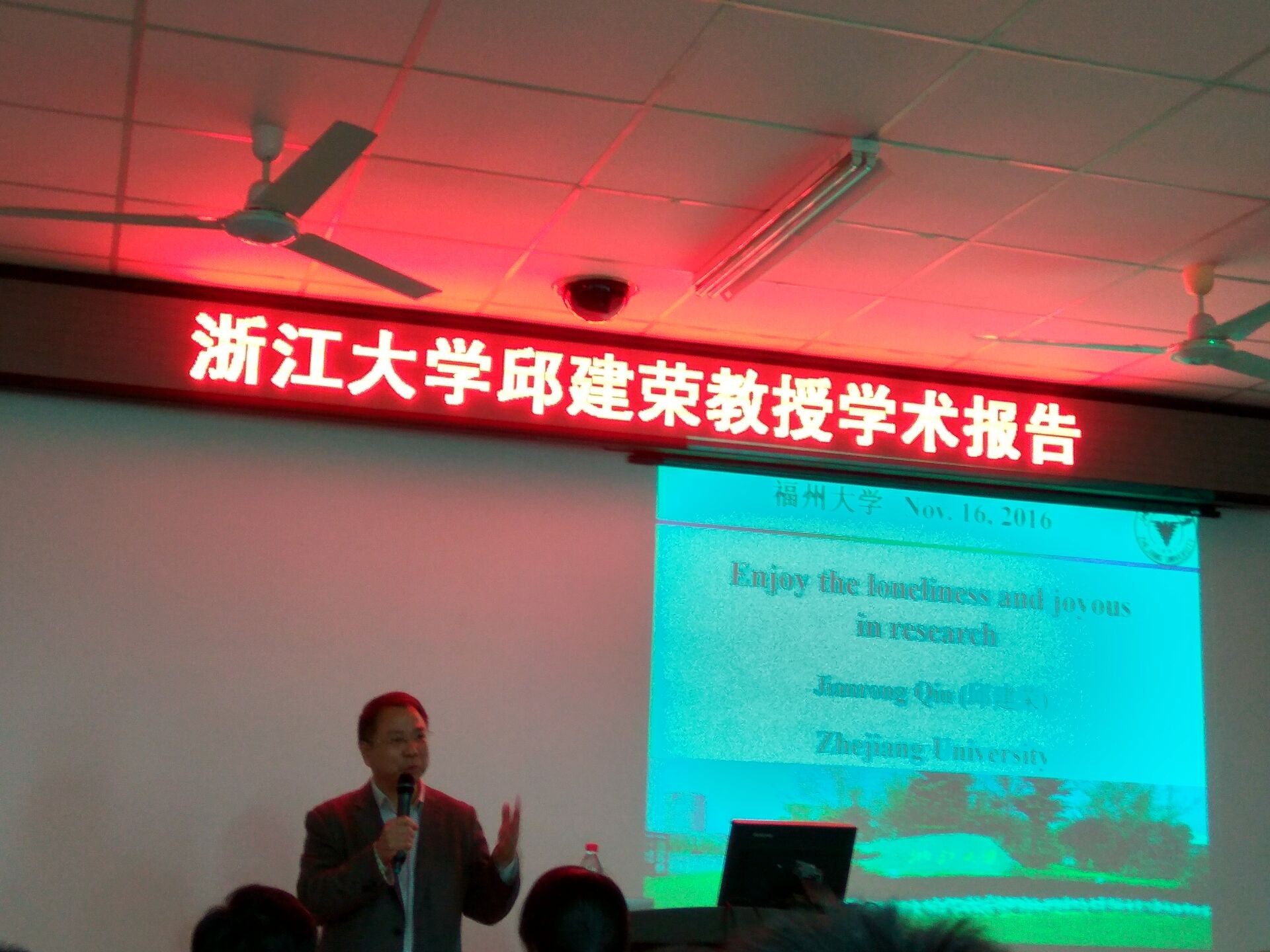 11月16日上午,浙江大学长江学者特聘教授邱建荣为成人动漫 师生带来一场题为“享受科研的孤独和快乐----和同学们分享一些体会和心得”的精彩报告。