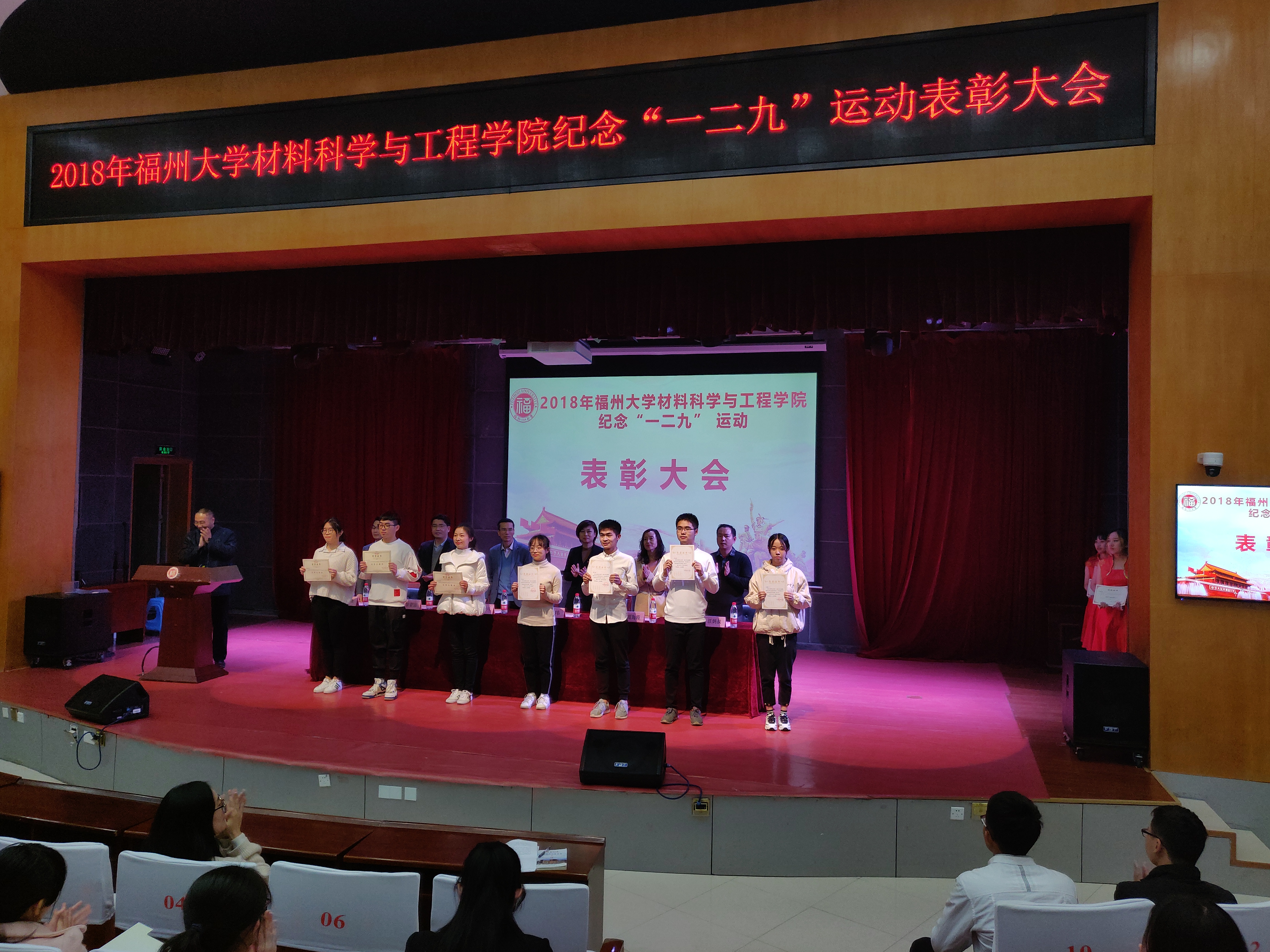 本次会议共分为六个议程。在主持人简单介绍来宾之后,全体师生起立奏唱国歌。接着,由院长助理汪炳叔老师宣读表彰决定。随着现场的音乐响起,各位优秀的学生代表在学院党委副书记王剑龙老师宣读获奖名单的过程中依次上台领奖。颁奖完毕,优秀学生代表院团委副书记邓志雄同学上台演讲,正如他所说,在党的关照、学院的关怀下,青年一代要更加努力,不忘初心,砥砺前行。随后,由王剑龙副书记表达了学院对同学们的殷切希望和美好祝福:青年强则国强,青年学生是构建学院一流学科的希望所在,成人动漫 历经二十年的风雨沧桑与不懈努力,取得了不俗的成绩,未来的成绩还需要继续努力,砥砺前行。最后,临近期末,考试即将到来,由汪炳叔老师代表大家做了期末考试的诚信承诺。大会在大家的掌声中正式结束。
