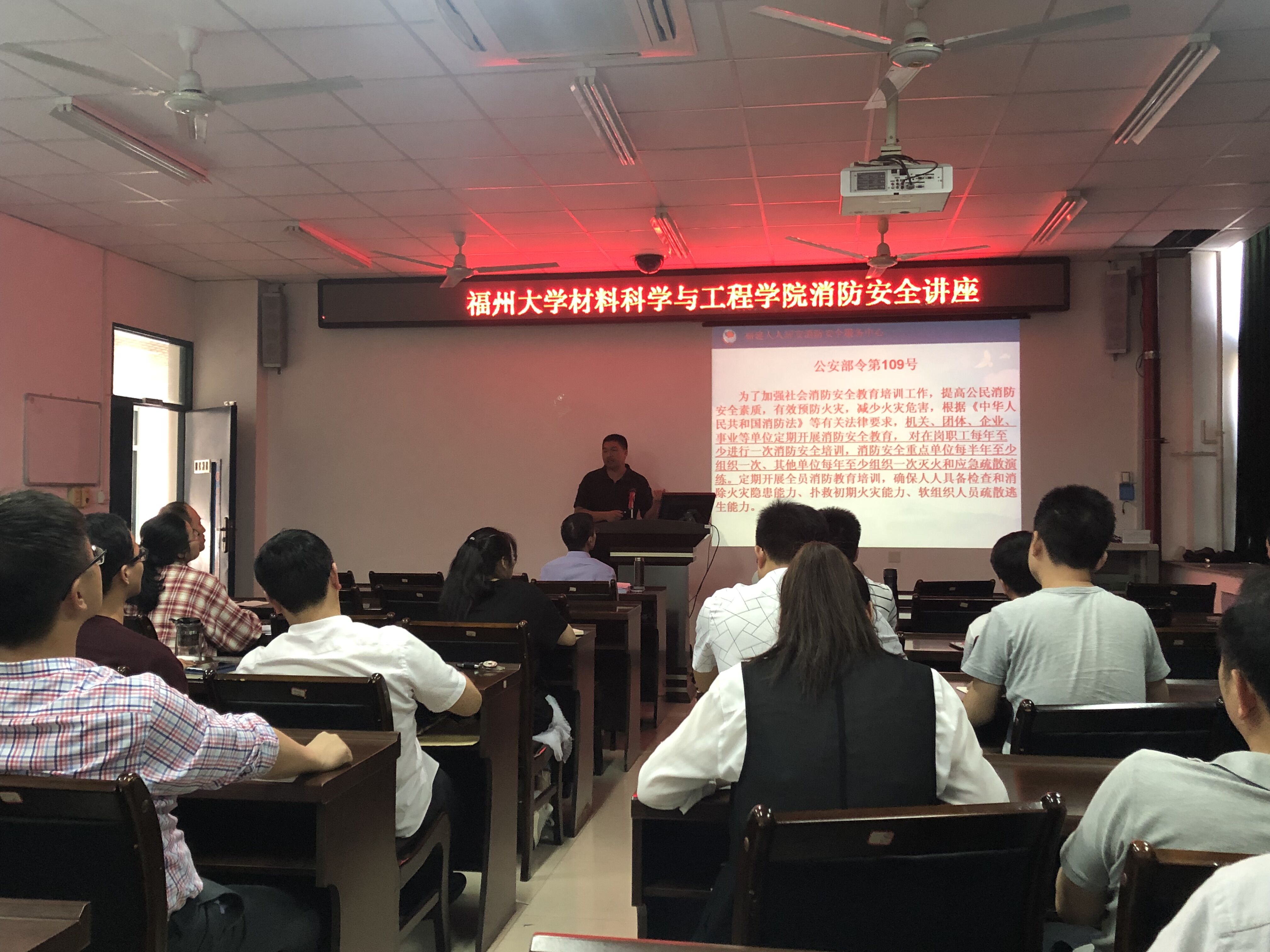 第一阶段是材料科学楼404会议室举办的安全教育讲座。由福建人人居安消防服务中心的赵教官结合师生的工作、生活开展安全教育讲座。讲座内容涉及到师生实验室教学与工作、居家生活、交通安全等方面,教官通过具体的案例告诉大家注重安全和发生安全危险时如何处置,全院师生受益匪浅。
