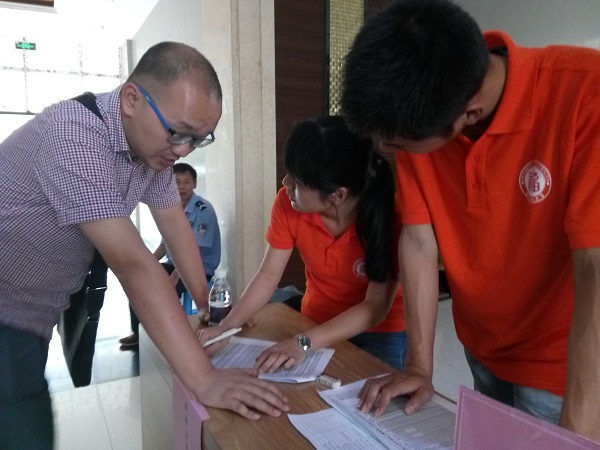 10时许,校团委书记吴雪老师、校团委副书记黄滨老师和王三强老师来到了酒店报到处,详细询问了各参赛队伍的入住情况,并亲切地同志愿者们交谈,肯定志愿者们工作的同时也叮嘱他们注意休息,防暑防晒。三位老师还为志愿者们带来了小蛋糕等点心。感动之余,志愿者们干劲更足了。