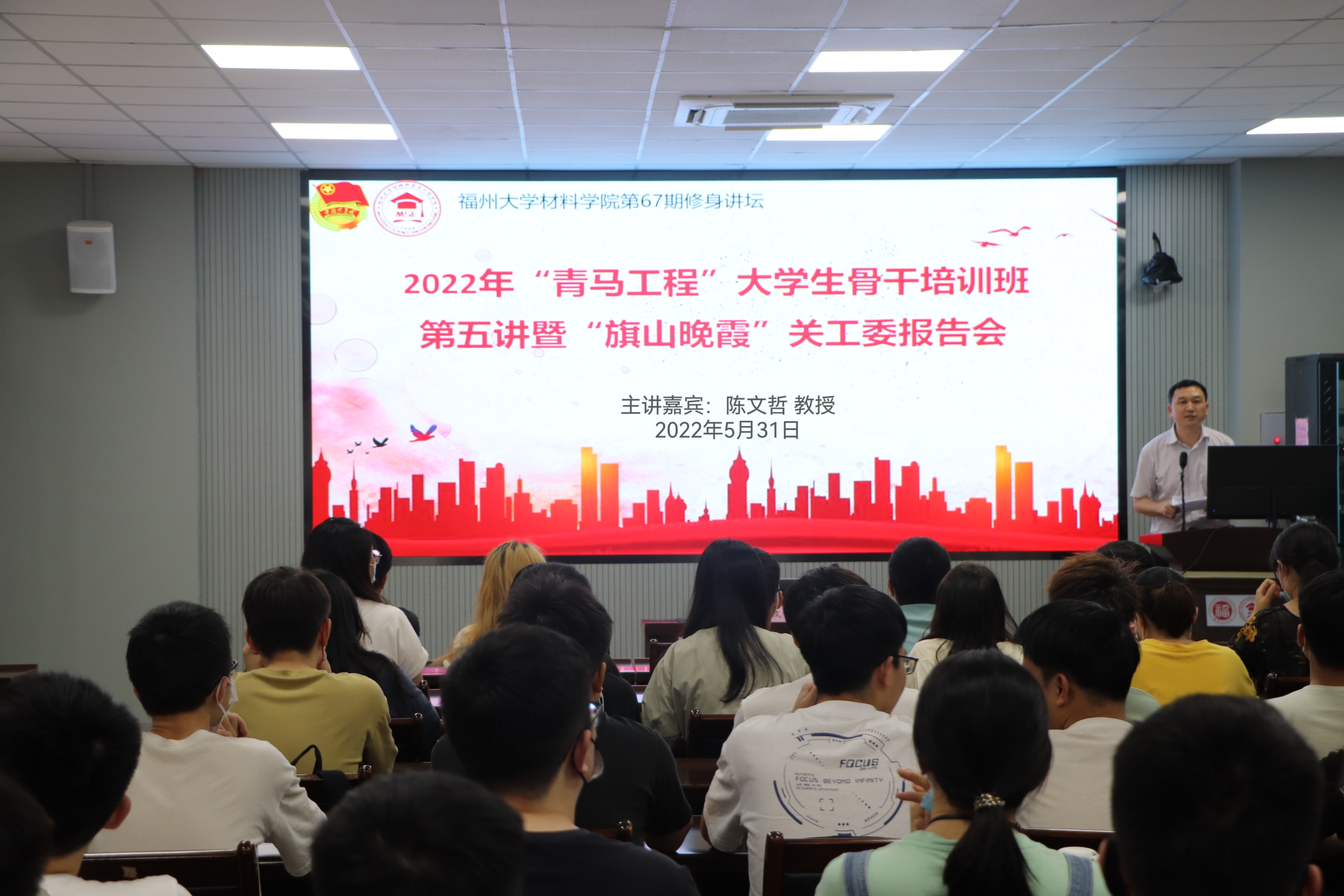5月31日,成人动漫 在材料科学楼404会议室举行“青马工程”大学生骨干培训班第五讲暨“旗山晚霞”关工委报告会暨第67期修身讲坛。本次活动邀请了福建省功能材料及应用重点实验室主任、厦门理工学院原院长、成人动漫 首任院长陈文哲教授作为主讲人,成人动漫 党委张志忠副书记出席并主持会议。学院团委牛秋月书记、辅导员王怡和王文栋老师、青马班学员和学生党员代表参会。