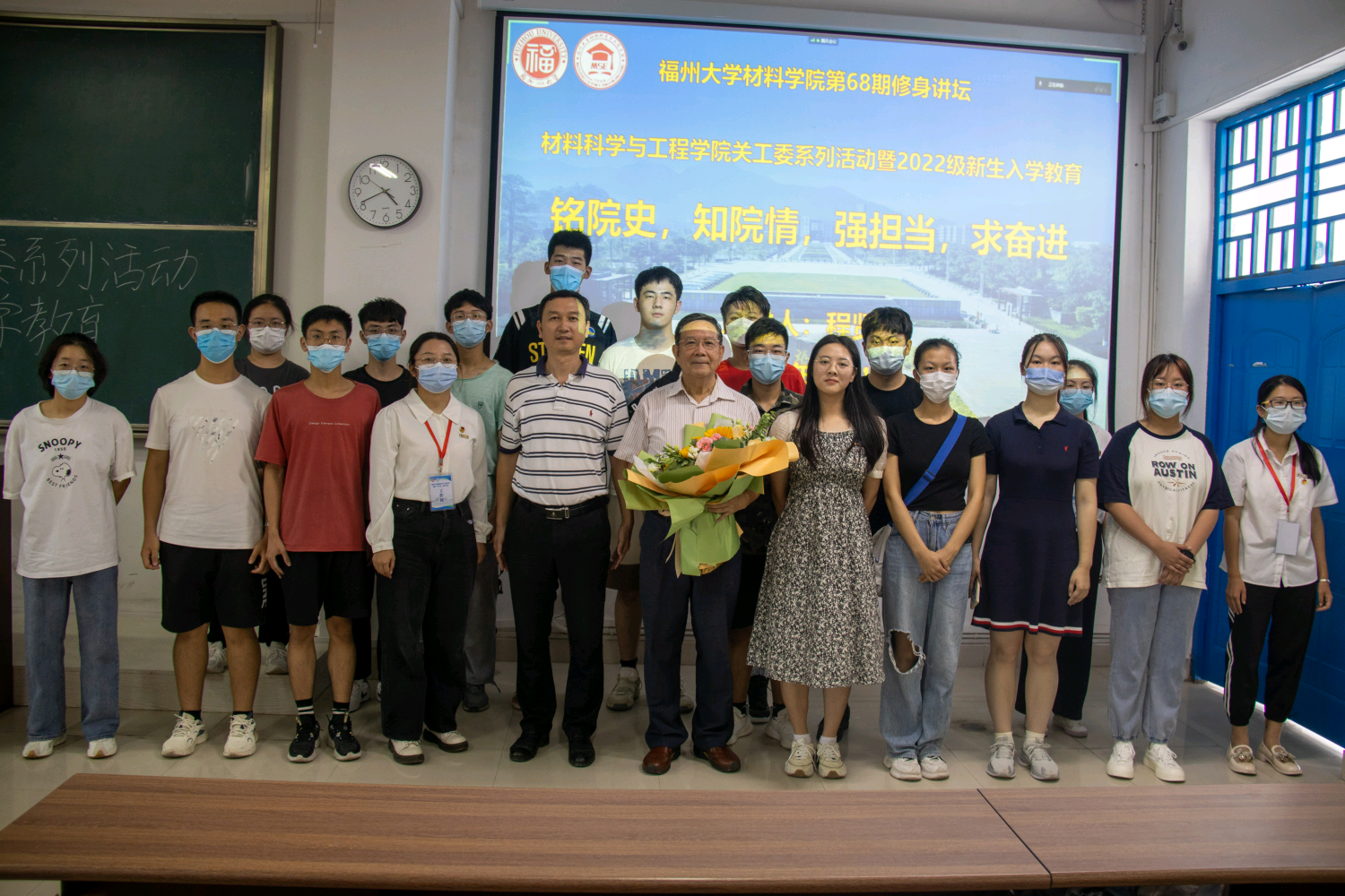讲座主题为“铭院史,知院情,强担当,求奋进”,程教授以自身经历为引,以所带学生的求学及成长历程为例教育启迪新生,通过回忆本科阶段影响其一生的两位先生的故事讲述了大学中的师生关系。除此之外,程贤甦教授还回忆了成人动漫 及高分子学科组建和发展的艰难历程,通过团队研究去放射性材料的案例带领广大新生进一步了解材料专业,同时程教授还讲述了新材料研究及科研竞争的乐趣,展示了新材料作为国之重器的重要性。