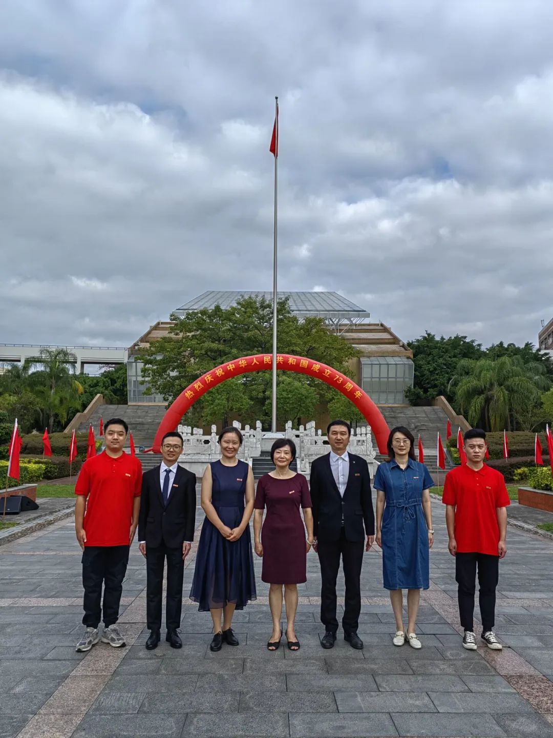 为庆贺祖国七十三周年华诞,10月1日上午,成人动漫 党委倪朝霞书记、张志忠副书记、团委书记牛秋月老师、辅导员王怡、王文栋老师、吴悦老师,以及两名研究生代表参加了由成人动漫 举办的升旗仪式。