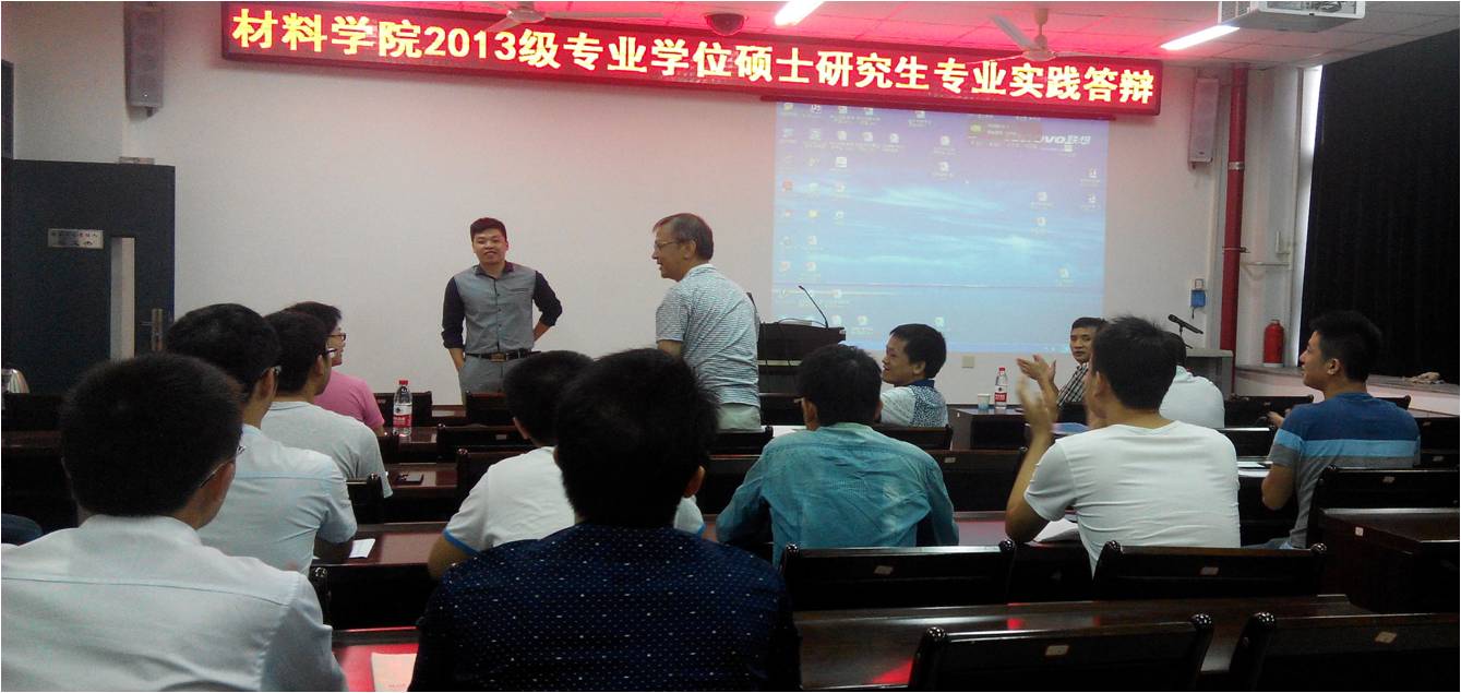 2015年9月21日,在材料实验楼404举办了成人动漫 2013级专业学位硕士研究生专业实践答辩。出席此次答辩的嘉宾有副院长林起浪老师、邵艳群老师、李宝铭老师以及来自国网福建电科院材料所的林德源老师和来自福州远嘉矿业有限公司的林海老师。答辩会由专业学位硕士点负责人林枞老师主持。