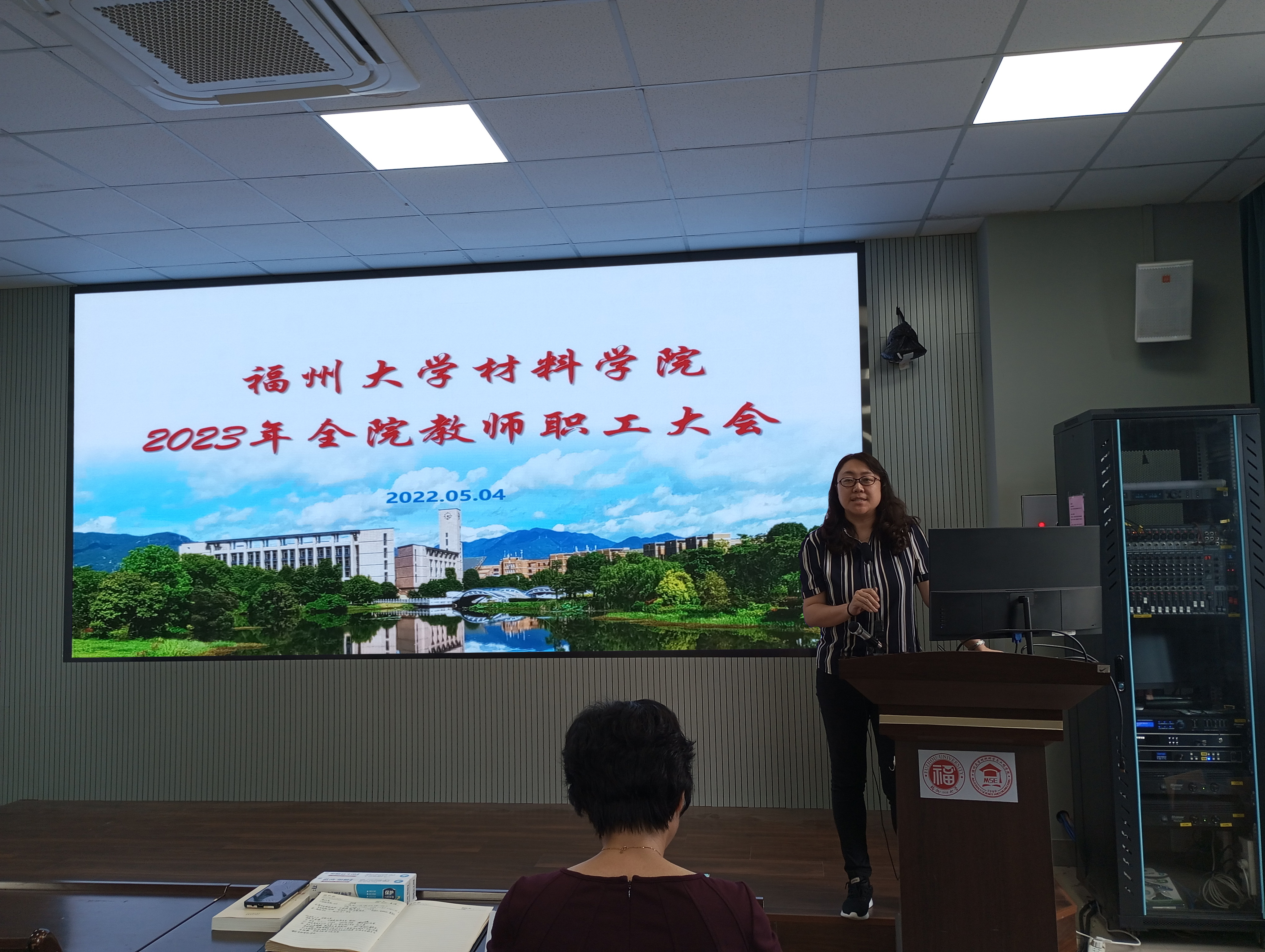 5月4日下午,成人动漫 2023年第二次全院教职工大会在材料楼404顺利召开。大会由院党委倪朝霞书记主持。会议伊始,倪书记代表学院热列欢迎三位新教师的到来,并邀请他们上台一一做自我介绍,介绍各自的研究方向和所在研究团队。