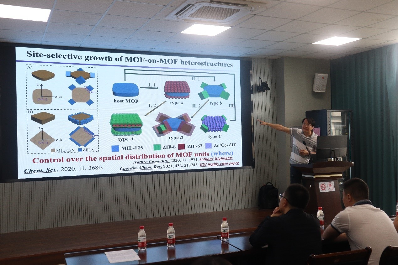 多孔材料具有组成多样、结构可控等特点,受到了广泛的关注。纳米结构多孔材料的构建为理解基本的结构与性能关系提供了新的方式。余承忠教授首先介绍了基于金属-有机框架(MOF)的纳米复合材料的界面组装,利用纳米MOF或其他功能纳米材料作为构建单元,该策略结合了MOFs和纳米材料的优势,如独特的原子和纳米尺度的各向异性,从而产生具有增强催化性能的新型材料。随后,余教授又介绍了用于药物递送的纳米粒子,纳米粒子可被设计为同时具有“载体”和“生物调节剂”的先进药物递送系统,这种药物递送系统具有以前无法获得的前所未有的功能。这一概念已被应用于癌症纳米免疫疗法,利用设计的纳米粒子的化学特性来调节用于免疫治疗的生物信号传导。