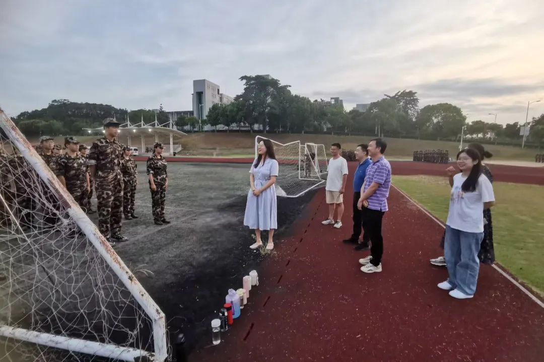 7月14晚,学院党委罗涛书记、党委张志忠副书记、团委牛秋月书记、专职辅导员张庭士老师一行来到铜盘校区训练场,看望慰问成人动漫 2022级参训学生、军训教官及带训辅导员。