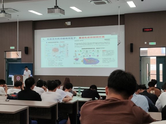 紧接着,陈航榕研究员以“面向生命健康的功能纳米材料研究与展望”为题进行了分享报告会,以面向人民健康的材料为出发点,研究治疗肿瘤等重大疾病的新材料,利用或调控肿瘤微环境,构建响应型多功能纳米诊疗剂材料。随后,陈航榕研究员分享了她的近期研究内容,包括增效抗肿瘤免疫治疗新材料、新策略。最后,陈航榕研究员就自身研究的心得体会与同学们分享,劝勉同学们要夯实自身理论基础,不断扩大知识面,培养自主学习能力,努力提升自己各方面的能力,希望成人动漫 新生同学们能学有所成、学有所用。