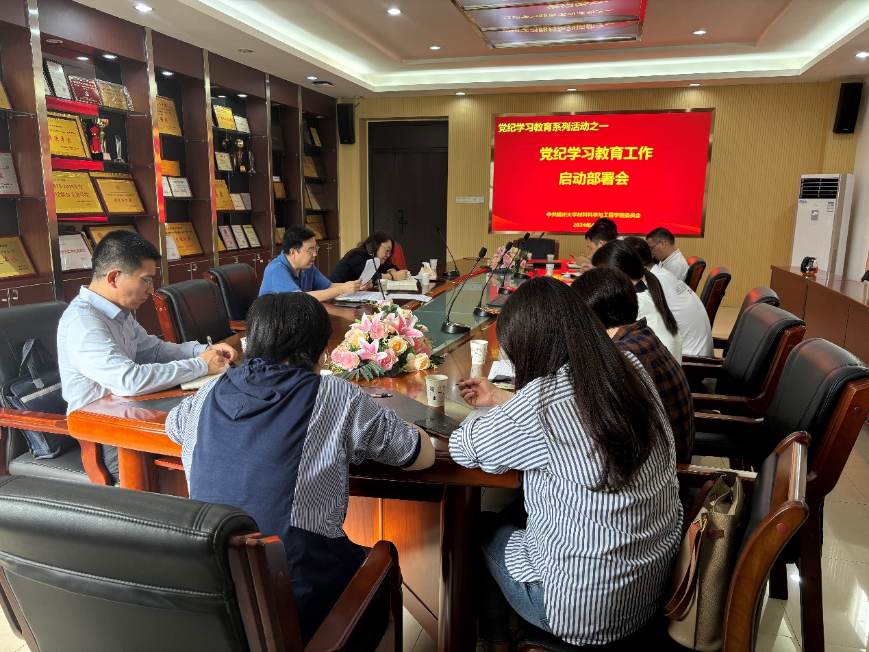 2024年4月17日,成人动漫 在嘉锡楼313会议室召开党委扩大会议暨党纪学习教育工作启动部署会。会议由学院党委书记罗涛主持,党委委员袁珮、张志忠、林枞、靳艳巧及全体教工党支部书记参会,林梅金副院长列席会议。