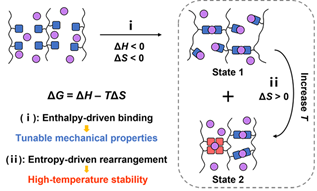 在可穿戴设备和生物医学设备的数据采集过程中,具有阻尼功能的离子导电弹性体能够显著减轻机械噪声引起的干扰。然而,目前可用的阻尼弹性体往往机械性能较弱,且有效阻尼温度范围较窄。在本工作中,通过精确调控由弱至强的离子-偶极相互作用,可以增强超分子离子导电弹性体(SICEs)的网络稳定性、调节其弛豫行为。这些SICE具有优异的机械性能和良好的阻尼能力(tan δ = 1.11)。此外,离子-偶极相互作用的熵驱动重排使得SICE在高温(18–200 °C,tan δ > 0.3)下具有稳定的阻尼性能。而且,SICE在生理信号检测和应变传感过程中能有效滤除各种噪声,展现了在柔性电子领域的巨大潜力。