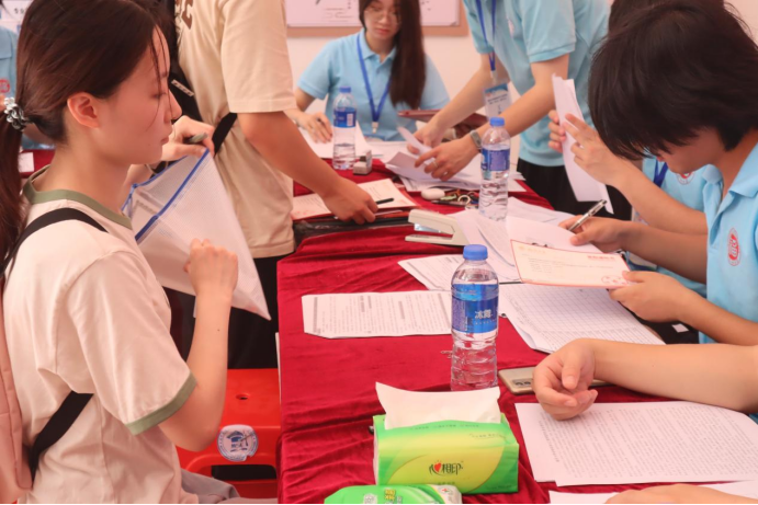 注册点还贴心的准备了新生大礼包,内含校院新生手册、鼠标垫、钥匙扣、定制书签、小扇子、矿泉水等,助力所有高“材”生研途顺遂、启航无忧!