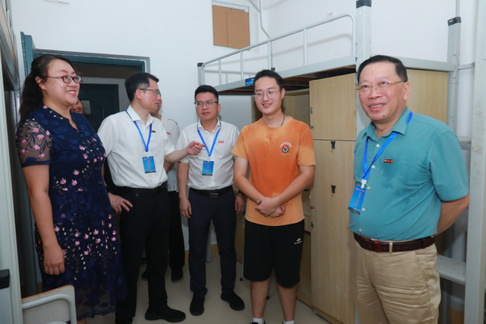 校党委陈国龙书记、黄身勇副书记、郭文忠副校长等校领导深入成人动漫 新生宿舍关心慰问,与新生亲切交谈,并亲自给成人动漫 研究生新生佩戴校徽,勉励同学们珍惜大学时光,实现人生理想。