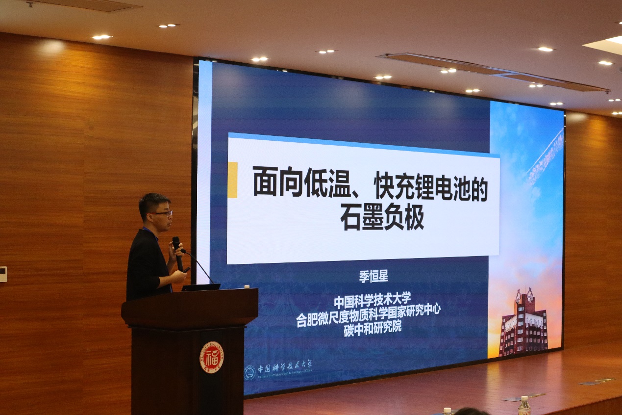 第二个报告来自国家杰出青年科学基金获得者、中国科学技术大学的季恒星教授,报告题目为“面向低温、快充锂电池的石墨负极”,针对锂离子电池负极在快速充电时的问题,磷基材料被认为是具有发展前景的、快速充电锂离子电池负极,季教授介绍了他课题组在磷/碳复合材料方面的最新进展,(1)界面共价键合去溶剂化,降低离子电阻;(2)体相结构调控,降低相变势垒、降低反应电阻。报告讲述了使用黑鳞修饰石墨,磷共价键的修饰实现了石墨和碳酸丙烯酯的兼容性。设计合成了LPO包覆的石墨负极。石墨嵌锂和石墨自组装重构的方法使得电池的倍率性能和低温性能提高。通过定制界面结构来提高高功率、大容量锂离子存储的锂离子传输和结构稳定性。