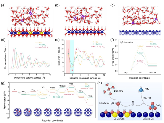 氨(NH3)作为一种清洁氢源,同时也是化肥、化工生产的主要原料,然而其工业合成主要依赖于高能耗、高碳排放的Haber-Bosch技术。电催化硝酸根还原(NO3-RR)可以利用绿色电能同时实现清洁的氨合成和工业废水处理,实现变废为宝。钴基催化剂由于其适当的NO3-吸附能力和快速的NO2-去除能力,被认为是一种极具潜力的电化学合成氨催化剂。然而,钴基催化剂在电催化NO3-RR过程中通常会发生重构,重构过程不可逆且难以调控。且电催化NO3-RR涉及多步质子耦合电子反应过程,其中氢化步骤需要持续供应活性氢(*H),目前界面氢键对NO3-RR性能的影响尚未得到充分解释。因此,亟需进一步探索钴基催化剂的动态重构机制以及界面氢键调控对NO3-RR电化学加氢合成氨性能的影响。