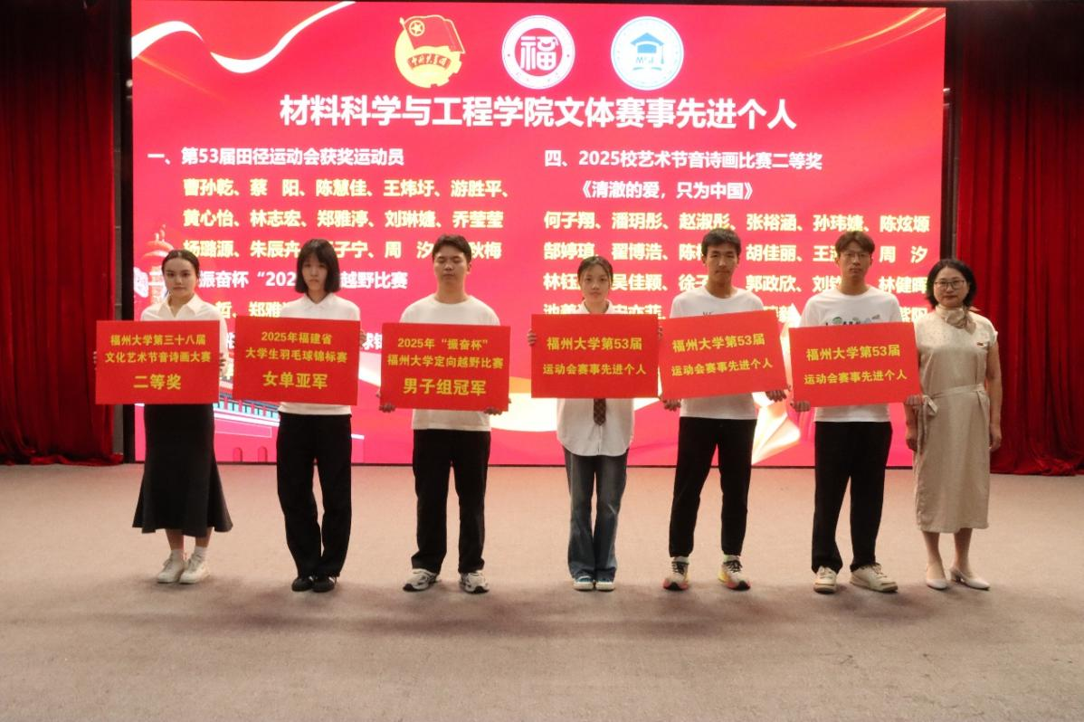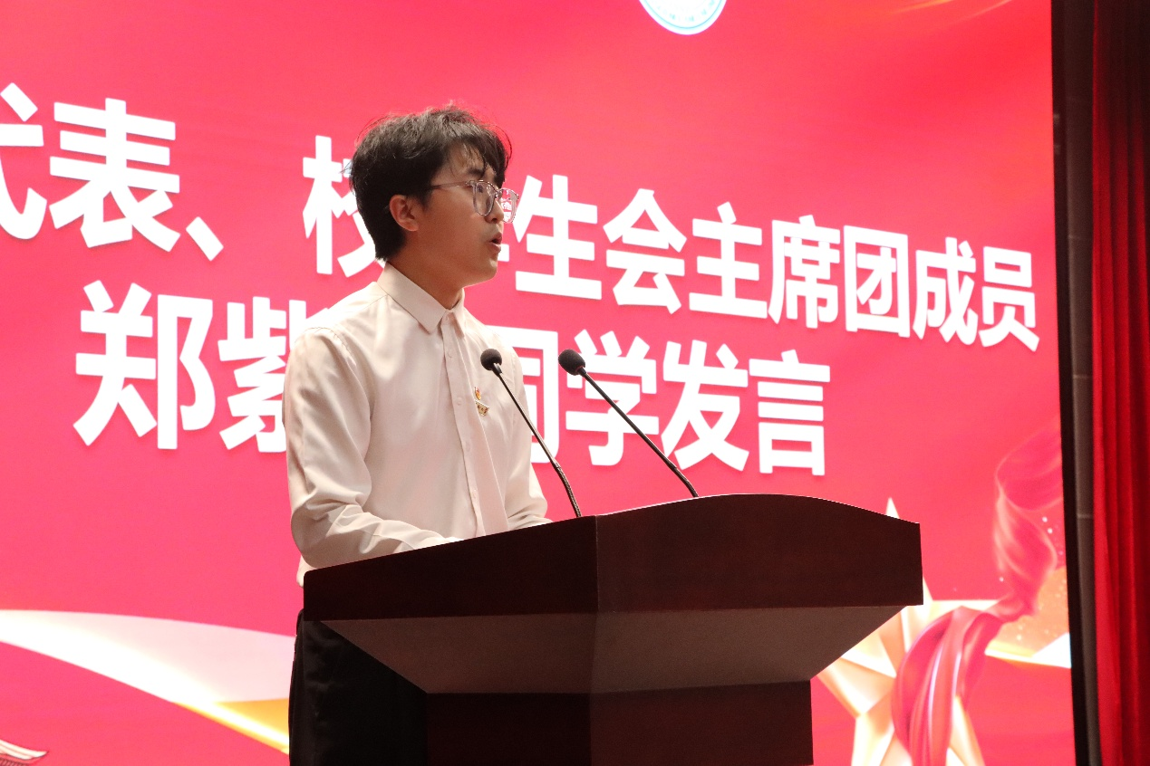 随后,学生代表、校学生会主席团成员郑紫阳同学回顾大学四年的成长与收获,从专业学习的深耕细作、学生工作的责任坚守、社会实践的淬炼成长三个维度,分享了在知识积累中收获的思想蜕变、在团队协作中体会的责任分量、在服务师生中感受的价值认同。他特别提到,作为材料学子,自己在参与科研项目与学科竞赛的过程中,深刻体会到材料科学对科技创新的支撑力量,也因身为“福大材料人”而倍感光荣。