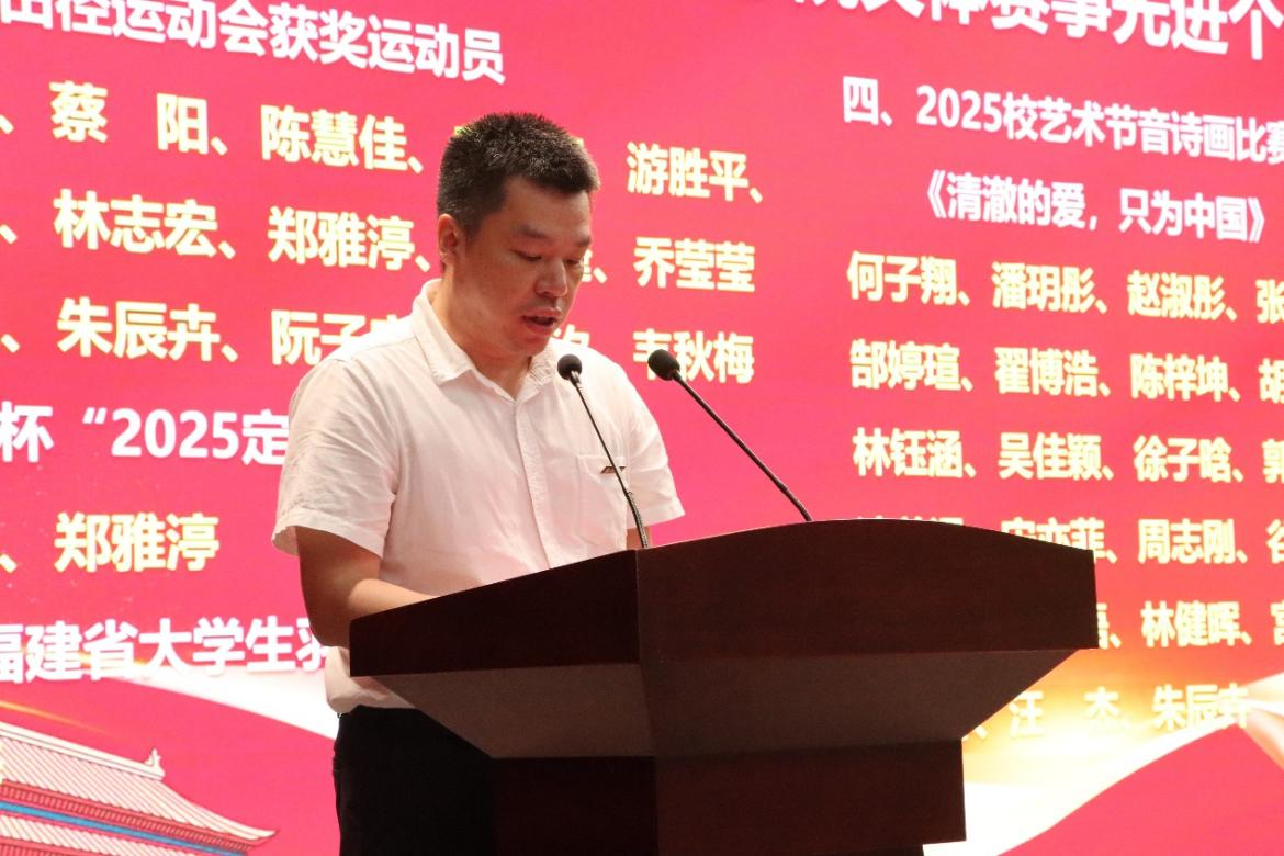 学院党委罗涛书记、林枞副院长、林梅金副院长、工会主席邵艳群教授、院长助理冯苗博士,以及青年教师代表、福建省闽江学者特聘教授郑云老师和学院团委副书记张庭士老师出席了本次大会。大会由院党委沈庆斌副书记主持,各年级辅导员以及 2023 级、2024 级本科生代表参会。