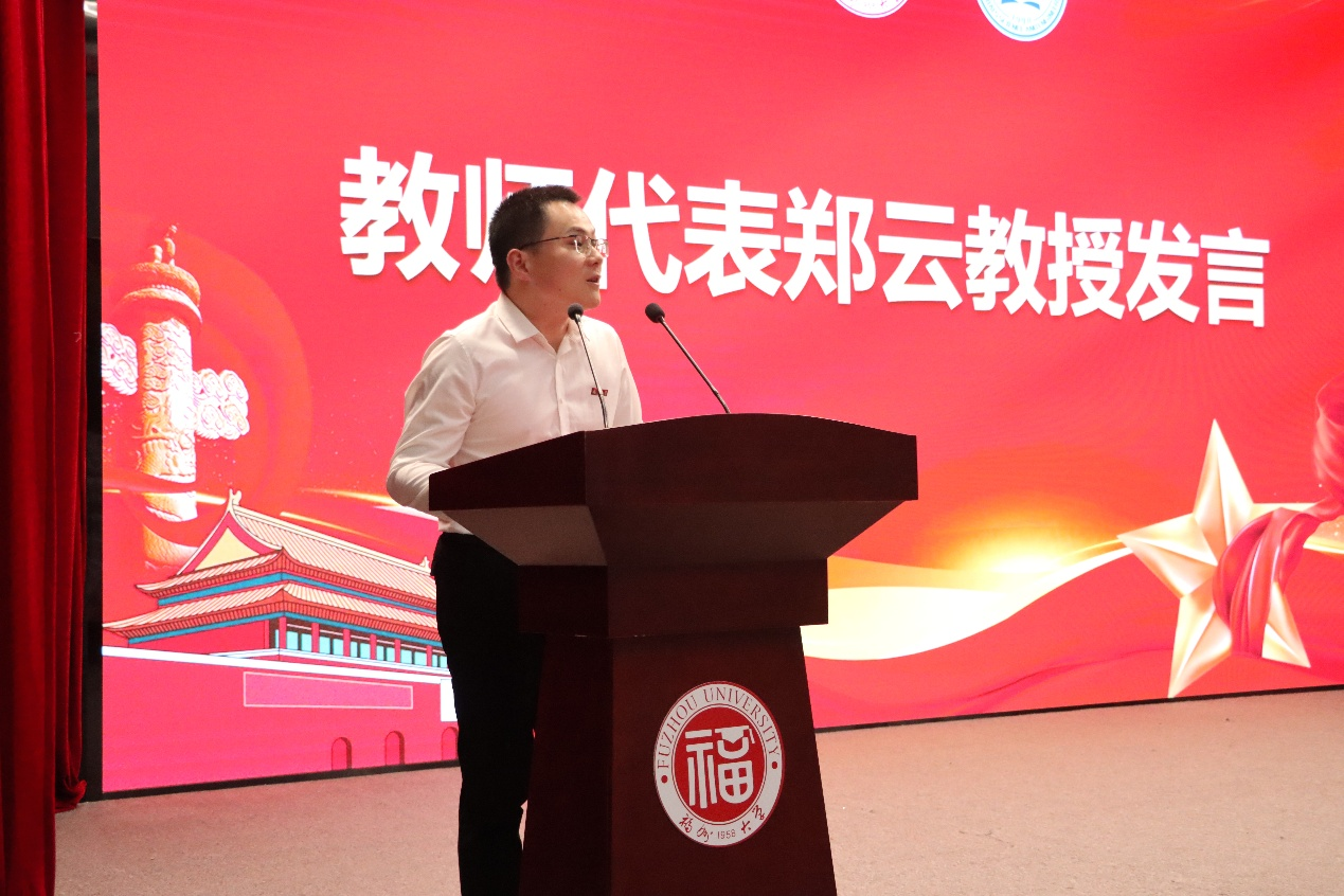 福建省闽江学者特聘教授郑云老师作为教师代表进行发言,郑云教授结合自身成长路上的四大人生课题,分享了四点人生感悟:第一,在人生重大抉择时,要学会听从本心;第二,要学会用“今天的我是否比昨天更进步”来真正体悟成长;第三,在信息洪流中,要做注意力的清醒舵手;第四,在追梦路上,要爱护身体,珍惜家人亲情。他呼吁材料青年肩负起新材料技术推动人类文明进步的使命,以材料人特有的执着,在实验数据的海洋中探寻真理,在微观结构的天地间构筑梦想,让五四精神在新时代绽放新光芒!