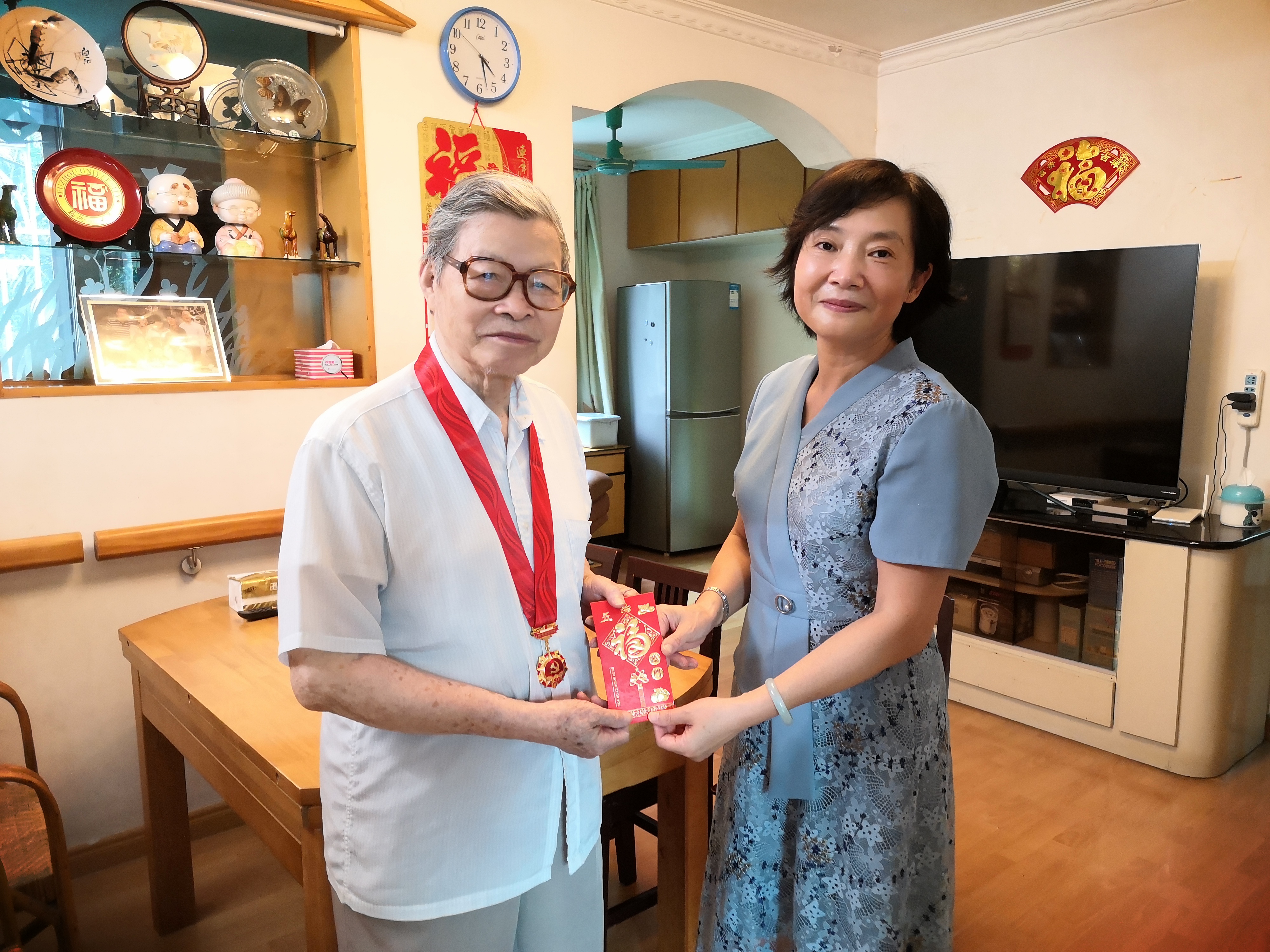 6月28日下午,成人动漫 党委书记倪朝霞带领党委组织员前往福大怡园、庭芳苑,为老党员颁发“光荣在党50年”纪念章。