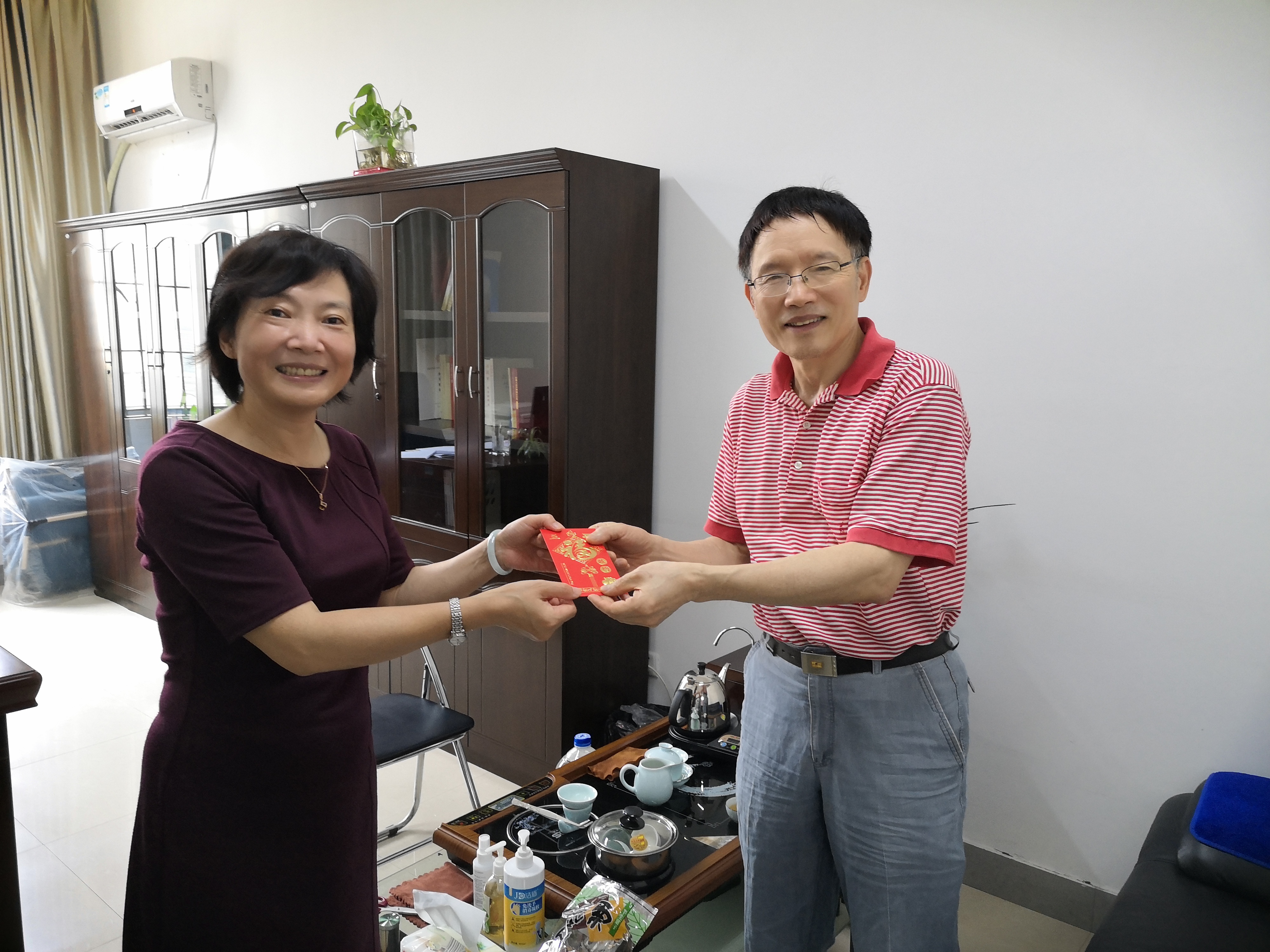 学院党委书记倪朝霞细致入微地询问每位老党员的身体和生活情况,耐心聆听他们对学院事业发展建设的意见,代表学院党委对他们在学院发展建设作出的贡献表示敬意和感谢,并送上慰问金。
