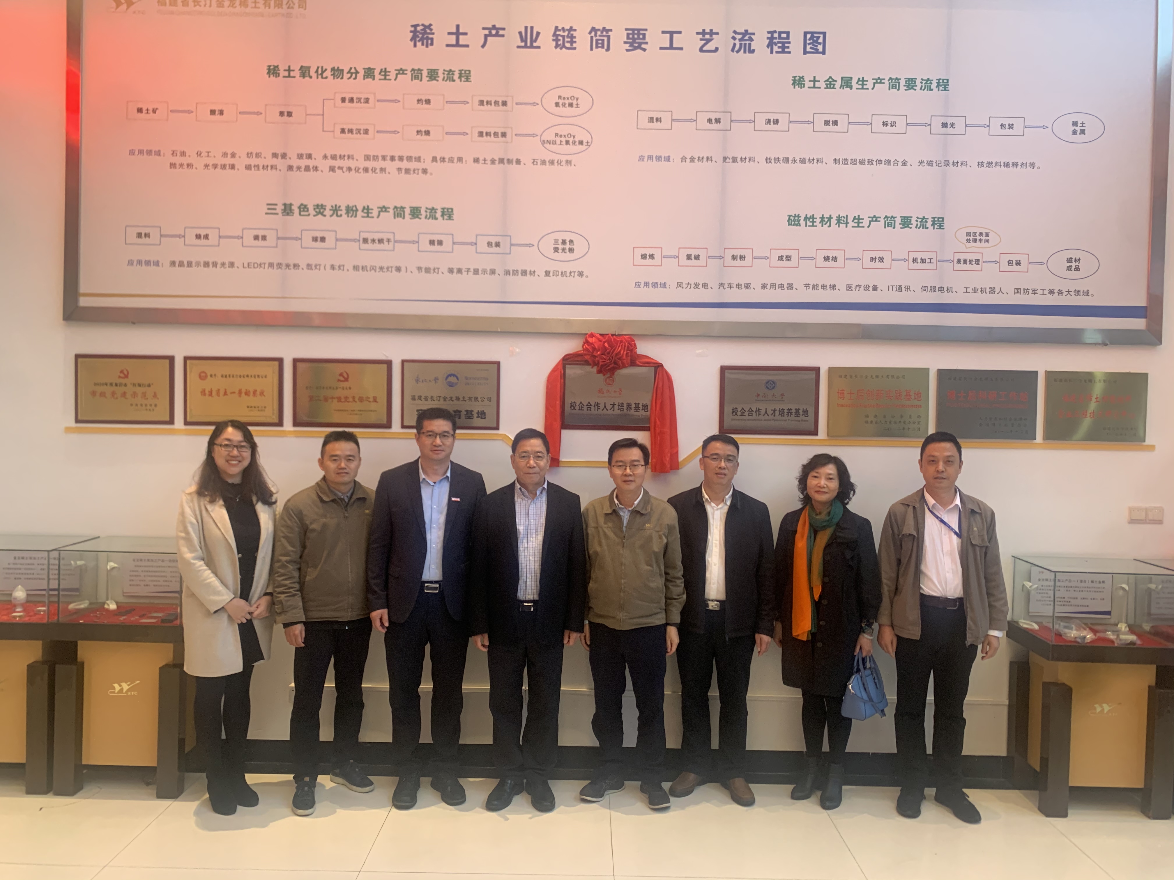 王心晨副校长、邹志刚院士一行先后参观了稀土元素萃取车间、磁性材料生产车间、稀土金属生产车间、表面处理车间,通过实地参观、听取汇报和现场交流,详细了解了金龙稀土公司发展历程、生产规模、稀土产业链布局、战略规划、产品工艺技术、科技创新、人才培养、产品应用以及未来发展规划等情况。随后举行座谈会,就双方在人才培养、企业研究生专班、研发合作项目、毕业生就业工作等多项校企合作项目做了总体回顾和展望。王心晨副校长指出,目前的合作模式很好,通过积极的沟通合作,让企业了解高校在做什么,高校知道企业需要什么,高校教师要更好地为地方经济服务。邹志刚院士提到,要把校企合作做实,企业提出课题“揭榜挂帅”,学校为企业发展提供人才培养基地与科研创新基地,同时要建立深度的合作交流长效机制,在原有良好的基础上,提升内涵建设,实现优势互补、合作共赢。