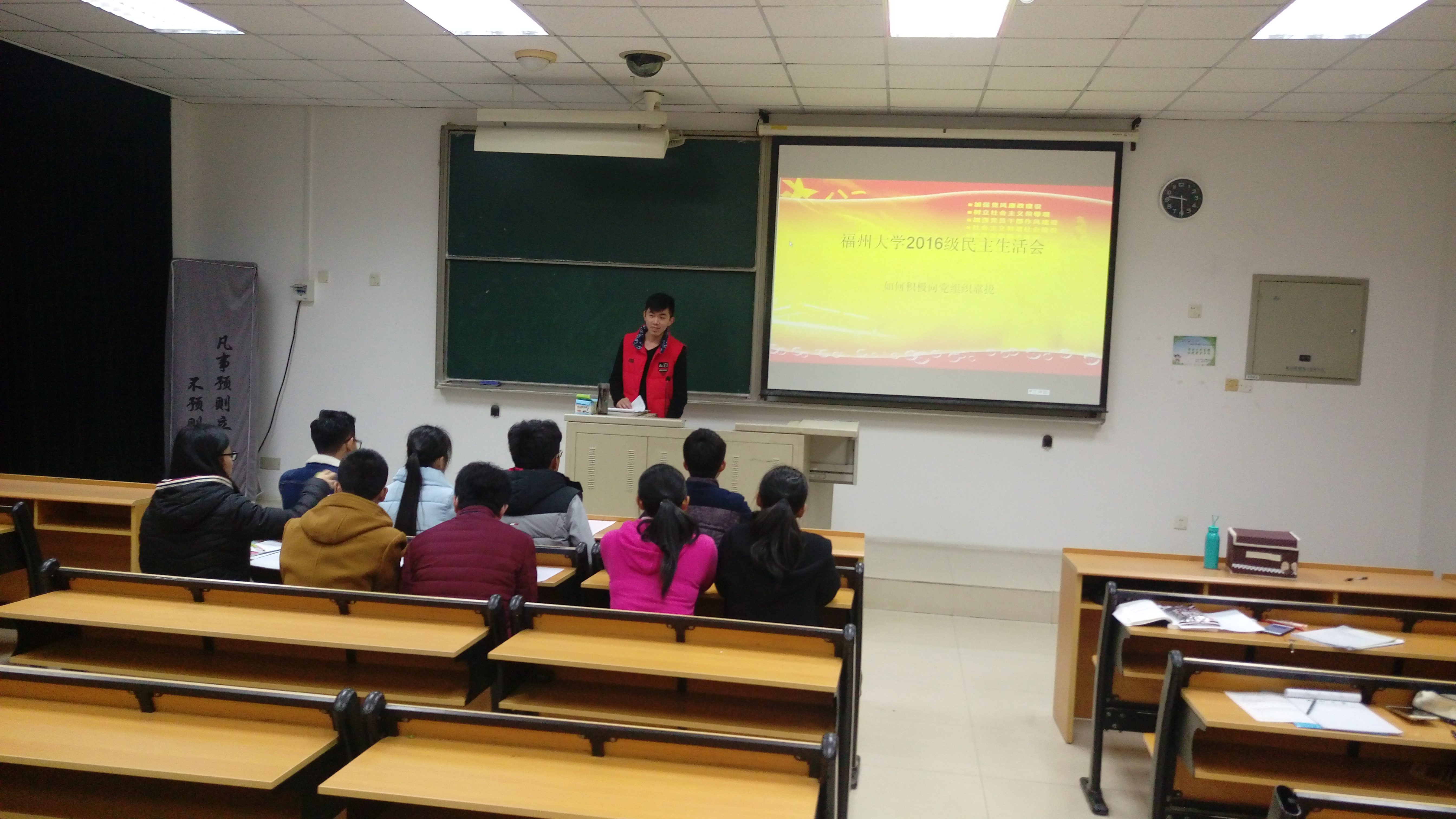 12月15日晚21:30,成人动漫 第16期入党积极分子第2组的“民主生活会”在西三403教室顺利开展。此次党课由2组组长赵文略主持,本次党课围绕“如何向党组织靠拢”开展。成人动漫 党建辅导员裘依梅出席此次党课,第16期2组全体入党积极分子悉数到齐。