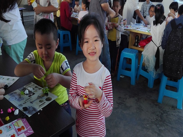 在轻松的陶瓷知识学习过后,小朋友领取了软陶DIY所用的原料,并在手工区展开天马行空的想象力,开心地玩起了软陶。在小朋友的巧手制作下,一个个可爱活泼的小玩偶小动物诞生了。活动尾声之际,支部成员还邀请于岩老师和小朋友们在横幅上签名留念,共同纪念这个美好的上午。