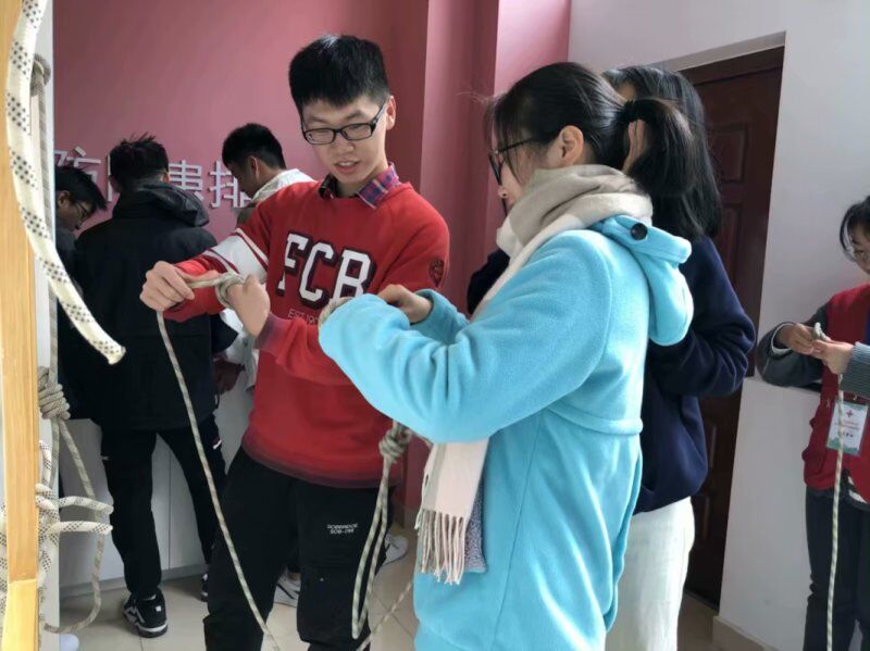 参观活动伊始,校红十字会的志愿者讲解员耐心地为同学们讲解了红十字基础知识、人体器官、用电、消防和食品安全、预防艾滋病和毒品等知识。讲解结束后,同学们进行了互相交流,他们主动学习了结绳技巧和心肺复苏技巧,并且进行了动手尝试。最后,随着同学们进行合影,本次参观活动落下帷幕。