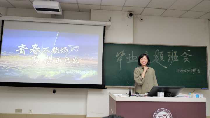 班会伊始放映了一年前班级风采大赛的视频,视频中同学们都说出了自己研究生阶段的收获与感想以及想对下一届师弟师妹们说的话。一段视频,再次让同学们回忆起自己当时入学不久,刚进入实验室做课题时又紧张又兴奋的心情。接着,由班长进行发言。他帮助同学们总结了大家一起经历的点点滴滴。其中,他提到在科研过程中当遇到困难时,同学们都没有惧怕,而是通过自己的努力以及互相帮助去克服难关。最后,辅导员黄真老师叮嘱同学们要注意安全以及做好毕业安排。黄真老师的声声叮嘱,让同学们没有遗漏任何关于毕业的重要信息。