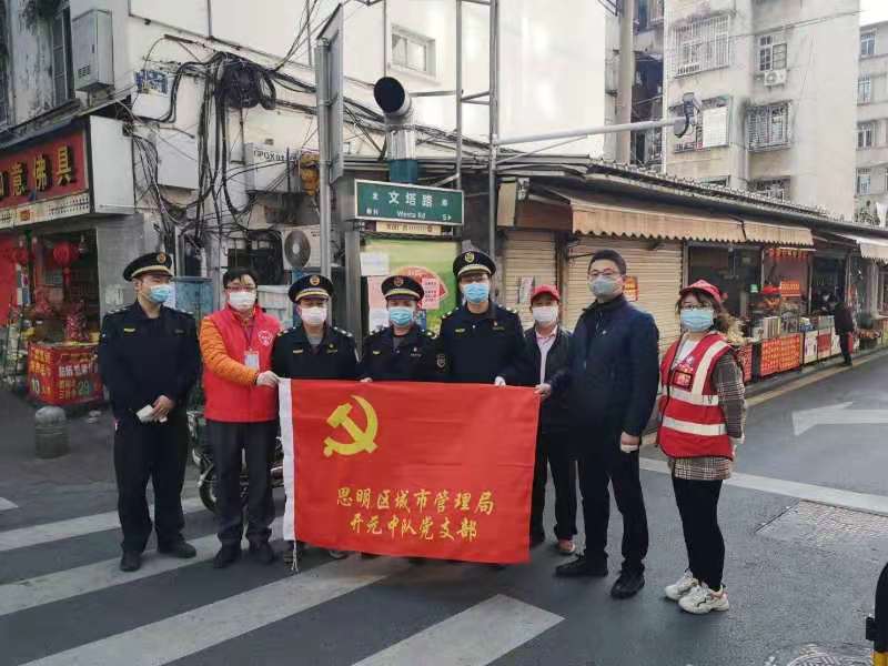 2019新型冠状病毒感染引起的急性呼吸道传染病(新冠肺炎)疫情发生以来,全国人民都在以自己的方式为对抗疫情奉献自己的一份力量。2月8日至10日,成人动漫 18级研究生陈玉环同学作为一名光荣的志愿者协助福建省厦门市思明区城市管理局开元中队党支部于菜市场门口处进行设站点、量体温工作。