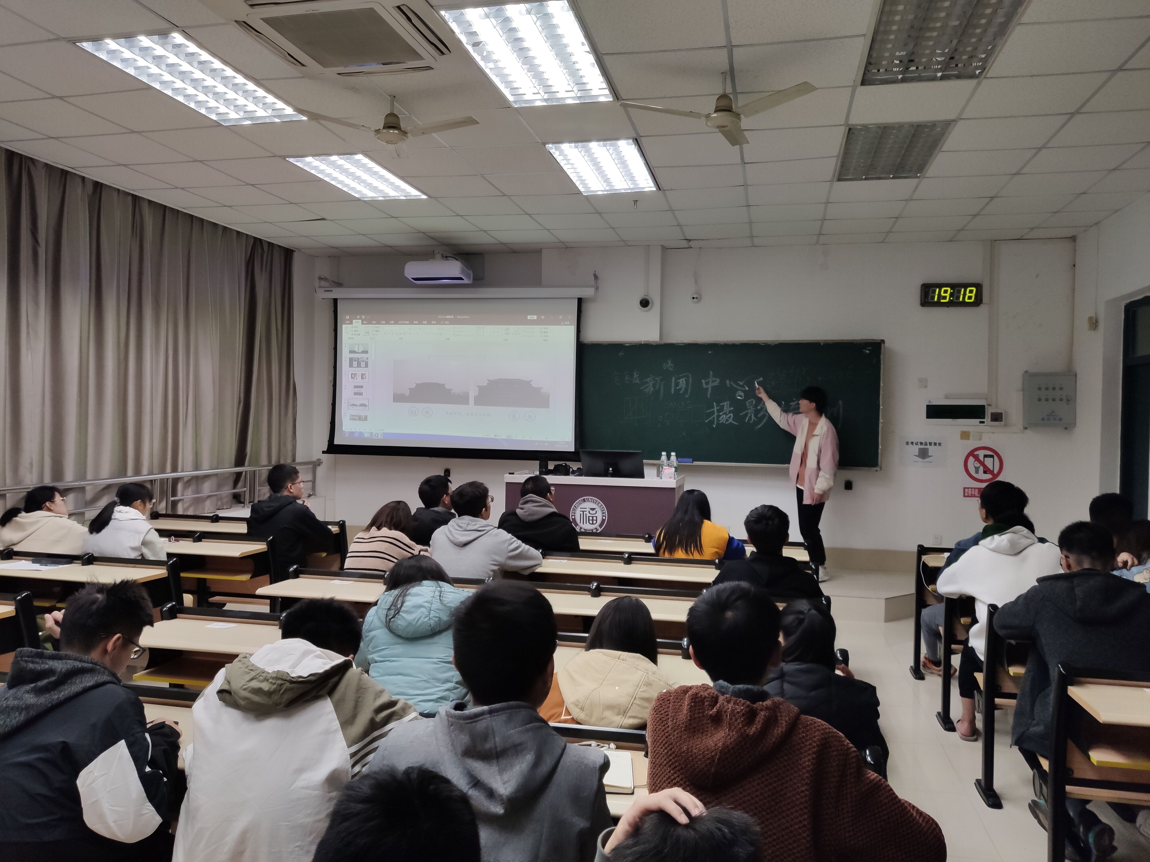 短暂的休息过后,活动摄影的实用技巧与注意事项让同学们更加聚精会神地聆听。提前到场踩点找机位、与主办方沟通了解流程、在嘉宾到场前拍空镜、拍重要嘉宾与签到场景、拍合照等等,一句句经验之谈让同学们受益匪浅。陈道祥同学不仅提醒了同学们活动摄影应该拍摄的内容,更谈及了不少摄影方法,合理构图、调整角度、注意景深与虚化、适当运用黑白照体现情感等等。最后的提问环节,同学们踊跃发言,现场气氛十分热烈。