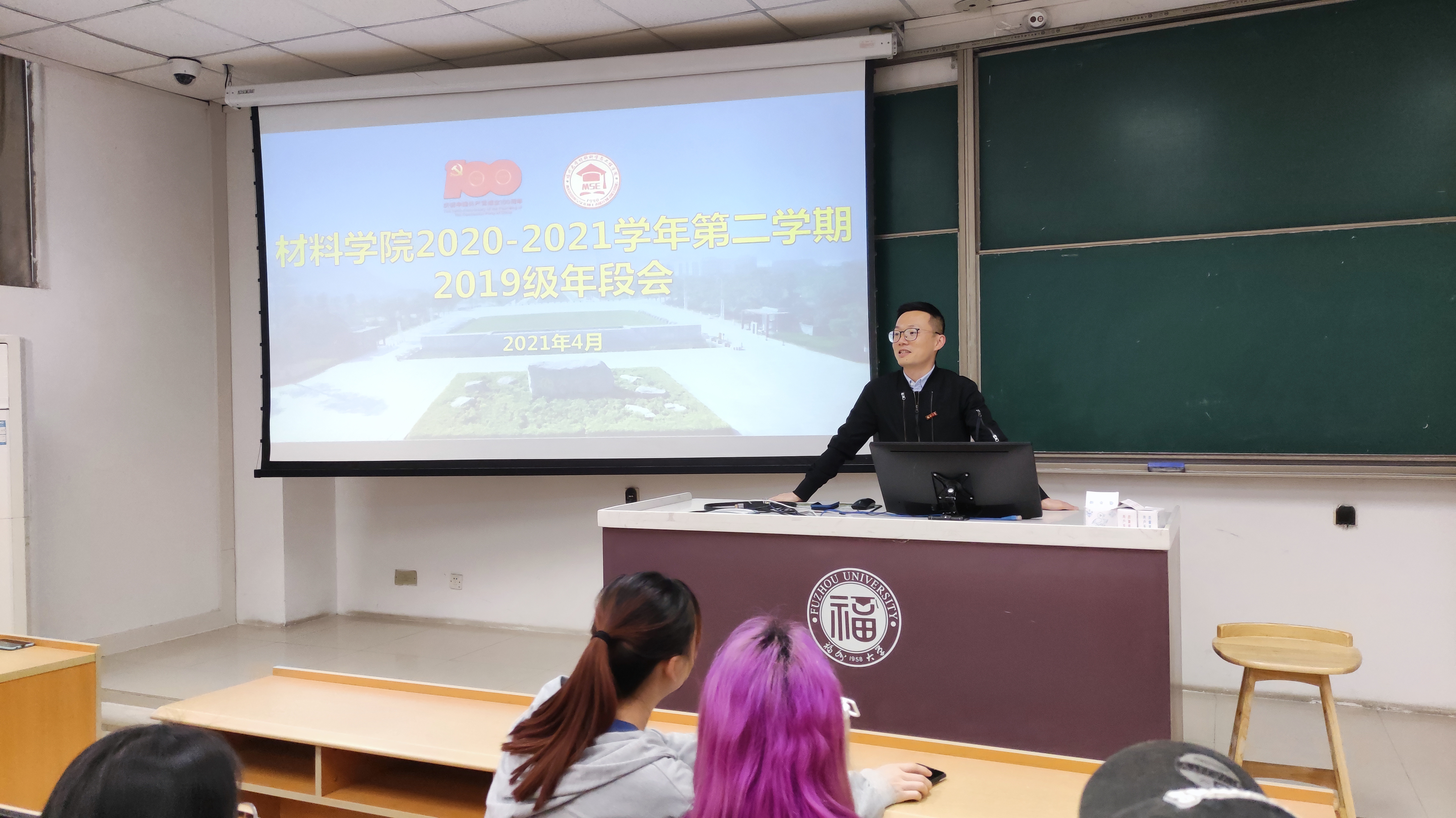 紧接着,王文栋老师向同学们介绍了本学期的学生工作开展方向,他介绍,本学期的学生工作主要围绕建党100周年主题教育系列活动、入党积极分子培训、学生党员党史教育、我校第十一届大学生节能减排社会实践与科技竞赛、我校第七届材料创新、设计及应用大赛、学风建设及其它活动开展。同时,他也提醒同学们注意食品安全、警惕网络谣言及电信诈骗,他强调,同学们在大学生活中要时刻注意保护好自己。