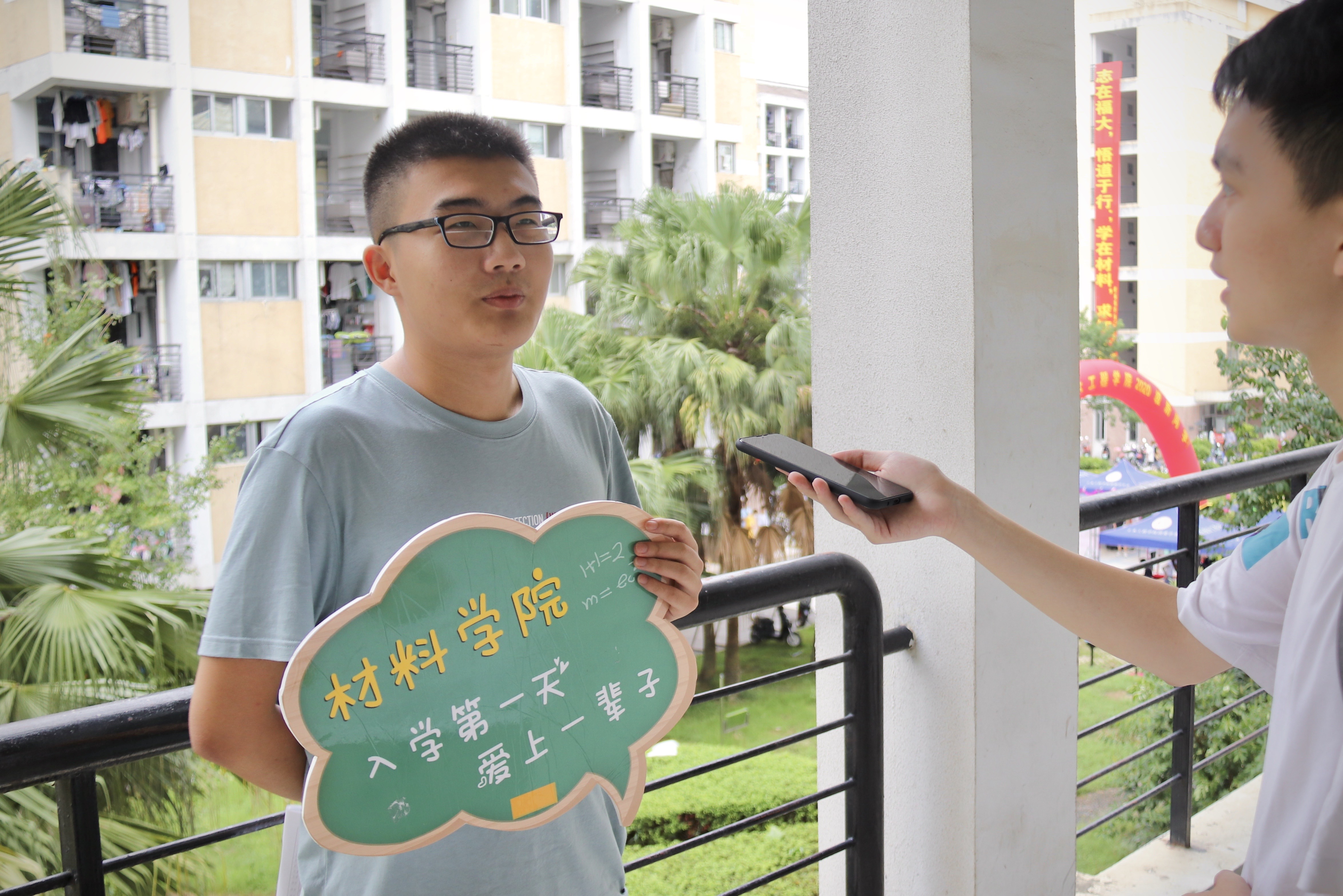在做好前期问题设计等准备工作后,记者们开始了本次的采访。在采访新生时,记者感受到了新生们对大学生活的向往以及今后在材料专业大展宏图的期望。“学长学姐很热情,帮助了我很多,让我在报道的过程中省去了很多麻烦。”张硕感慨道。虽然是第一次长时间离开父母,但他一点不感到担心,相信自己能够与舍友好好相处,能够很好地做到独立。提到对未来的规划时,张同学表示想要好好学习,争取考研。而谈及对专业的了解,同学们各有见解,从他们的回答中能感受到他们对专业具有浓厚的兴趣。最后他们纷纷表示对专业和学院的发展有信心,能够有更好的明天。