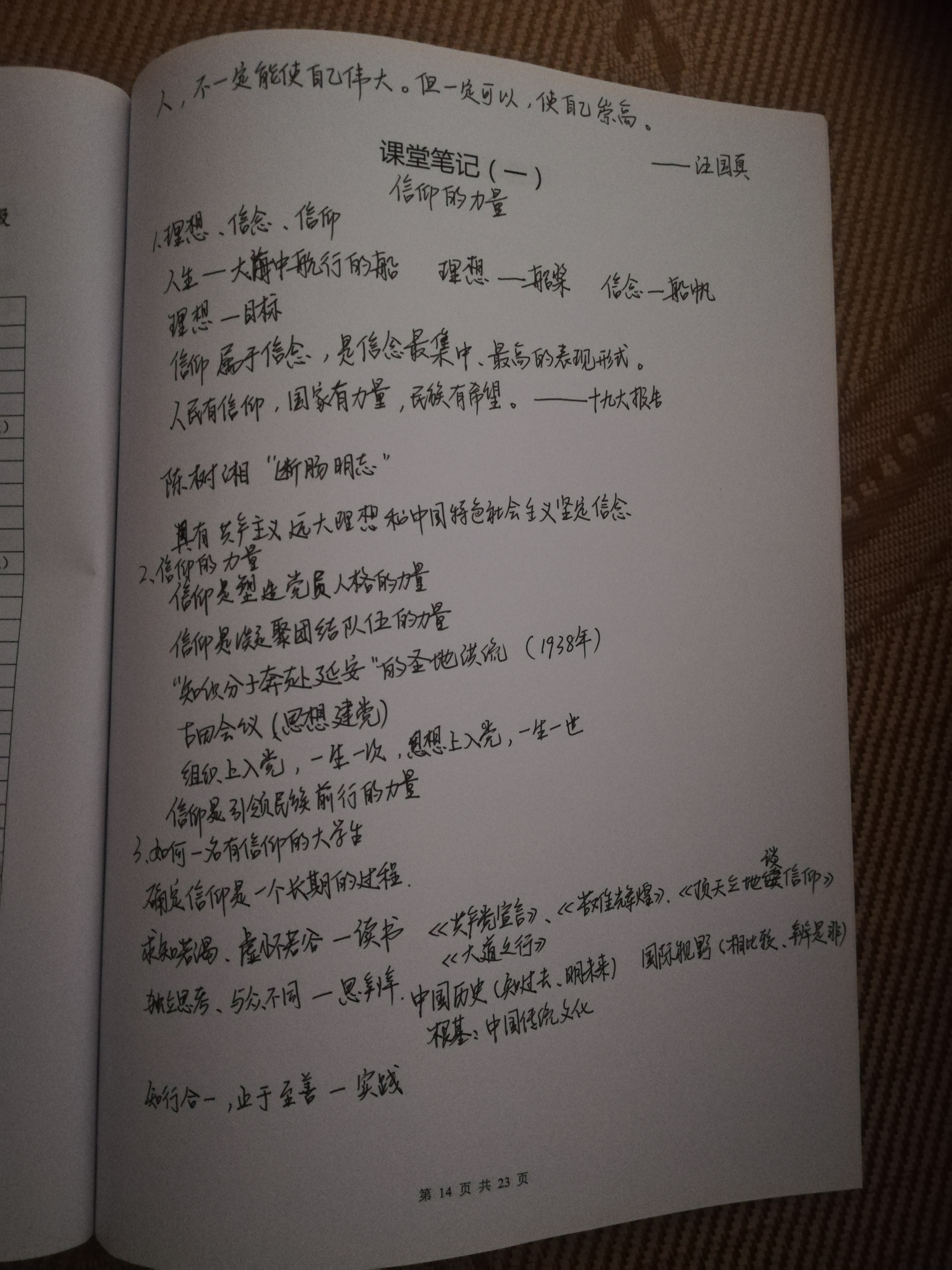 本次党课让同学们对信仰有了进一步的认识,对共产主义远大理想和中国特色社会主义信念更加坚定。希望同学们在今后的党课中更加努力认真。