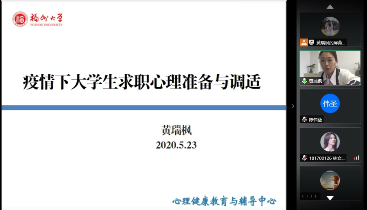 2020年5月23日,成人动漫 心理健康教育与辅导中心专职心理咨询老师黄瑞枫为材料学子们讲授了一次关于“疫情下大学生求职心理准备与调试”专题讲座。黄老师分别与我们讲述了新冠疫情给大学生带来的影响、疫情下求职的心理问题、冷静理性积极应对这三个方面。