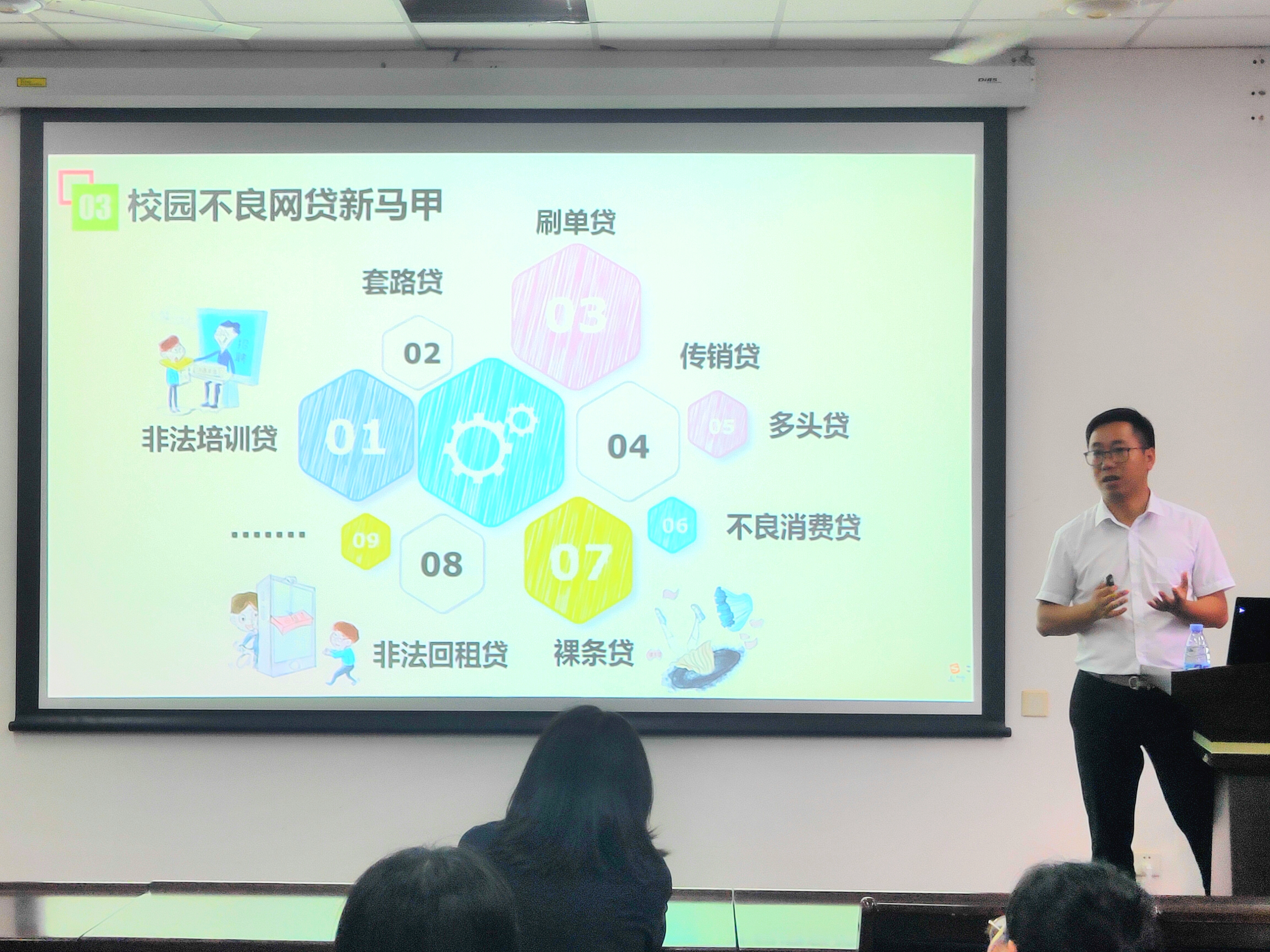 为提高广大学生的金融安全防范意识和识骗防骗能力,5月20日下午,成人动漫 “金融安全知识校园行”主题讲座于材料科学楼404顺利举办。讲座由兴业消费金融股份公司客户经理范武祥主讲。