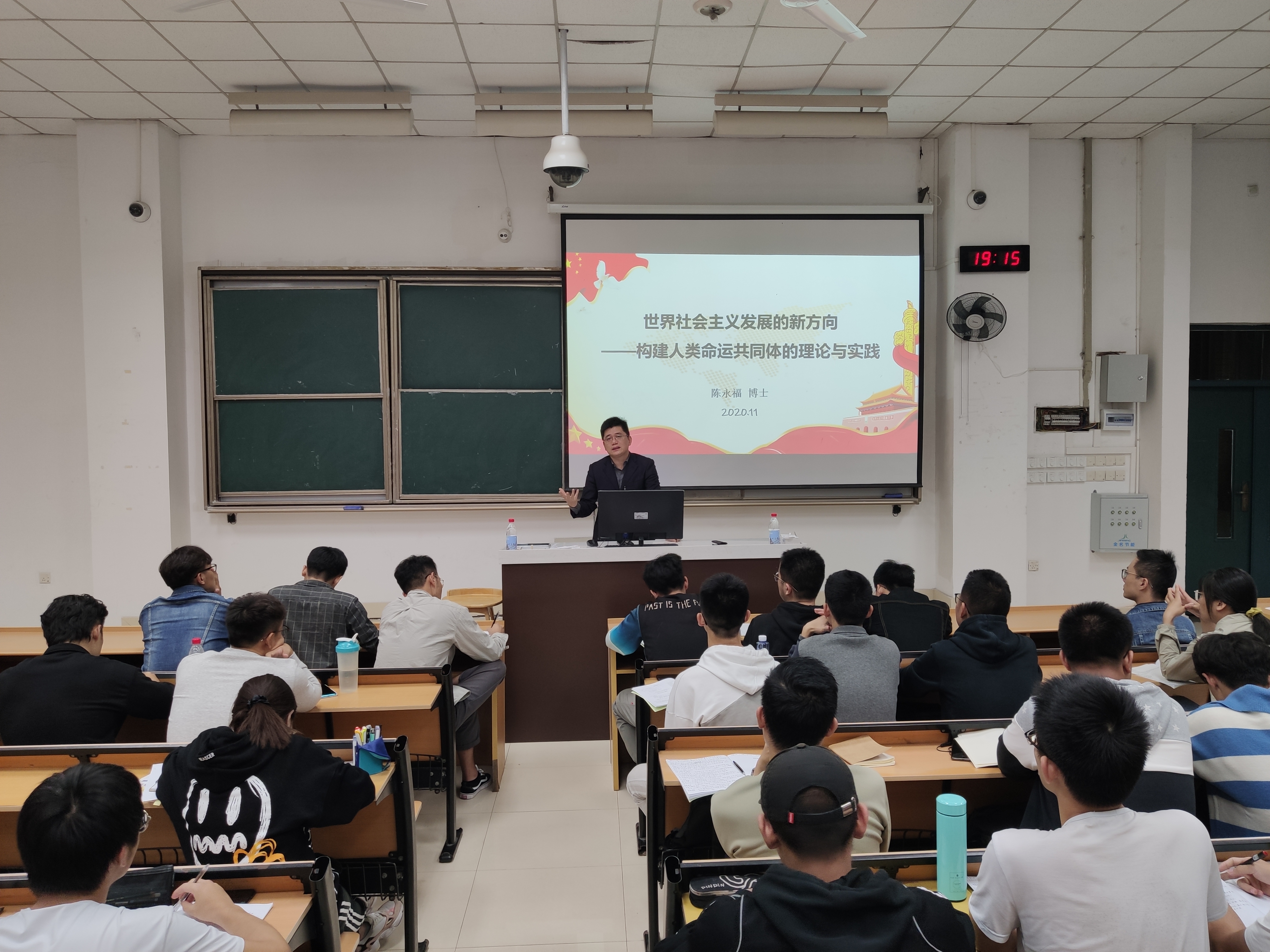图为陈永福老师为大家讲解人类命运共同体的诞生原因