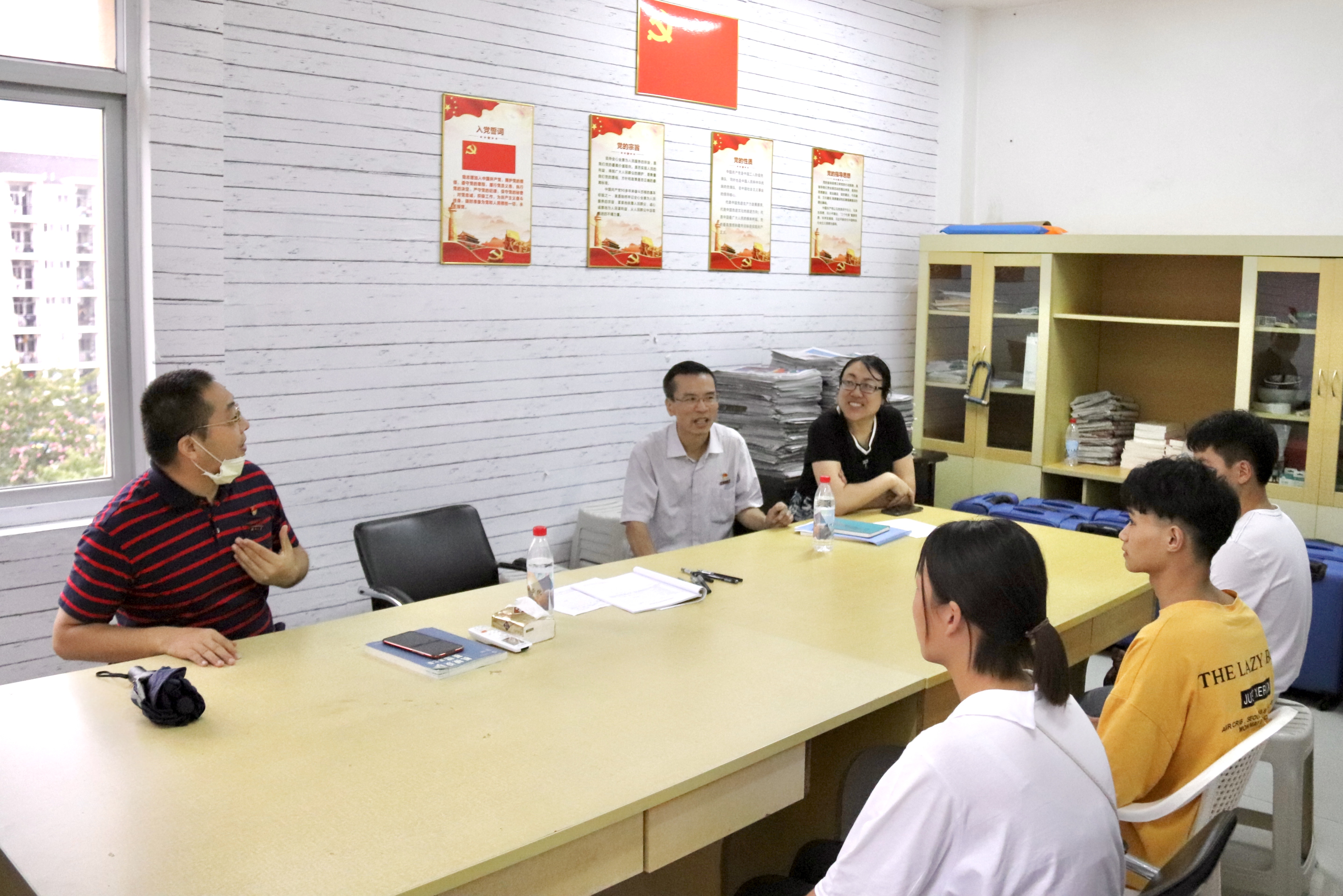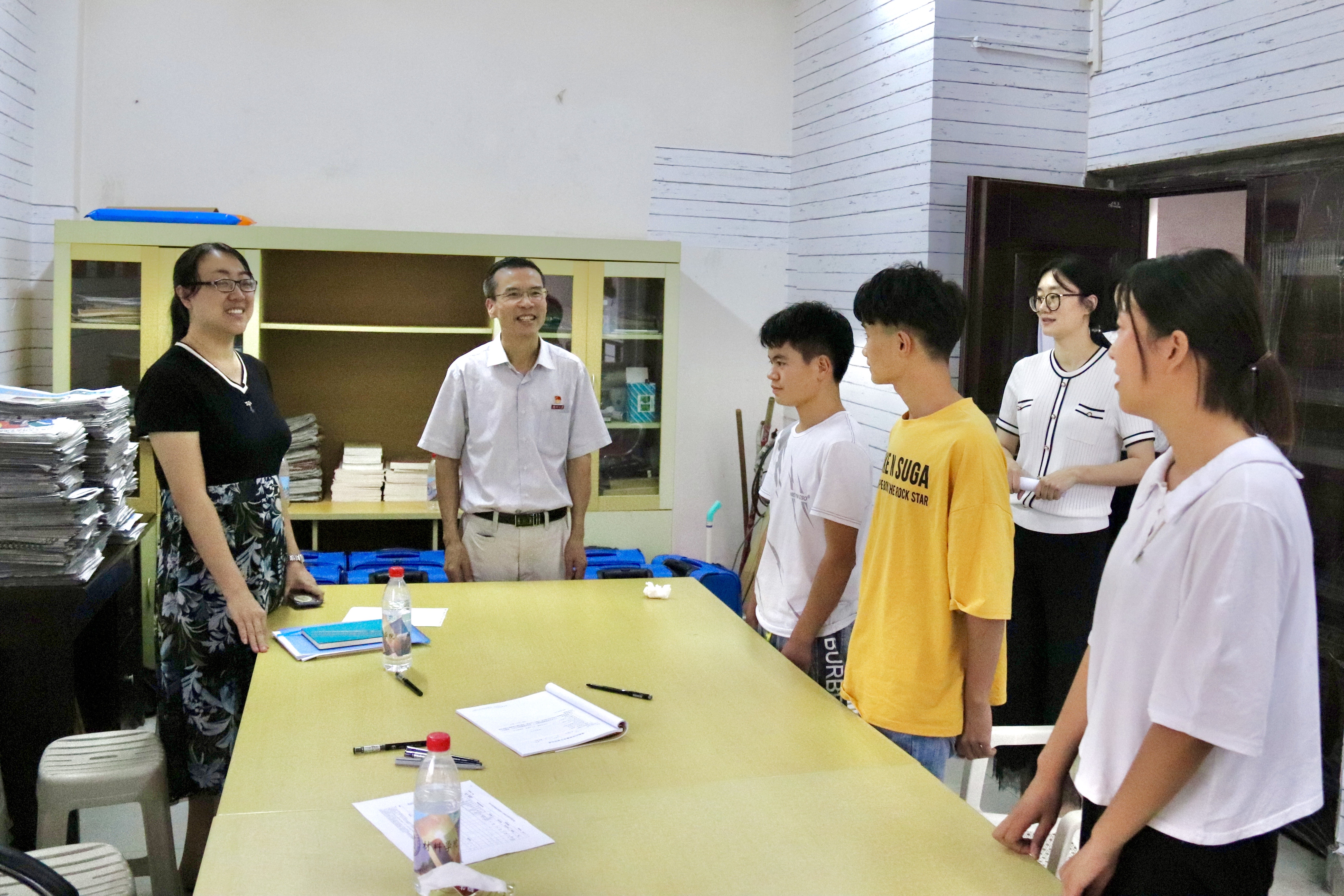 在绿色通道内,黄真书记及在场的志愿者与家庭经济困难的新生进行了畅谈,他们从这些新生的基本信息入手,对新生的家庭成员情况、收入情况、负债情况等各类信息进行了深入了解,并给出建议、做好记录。