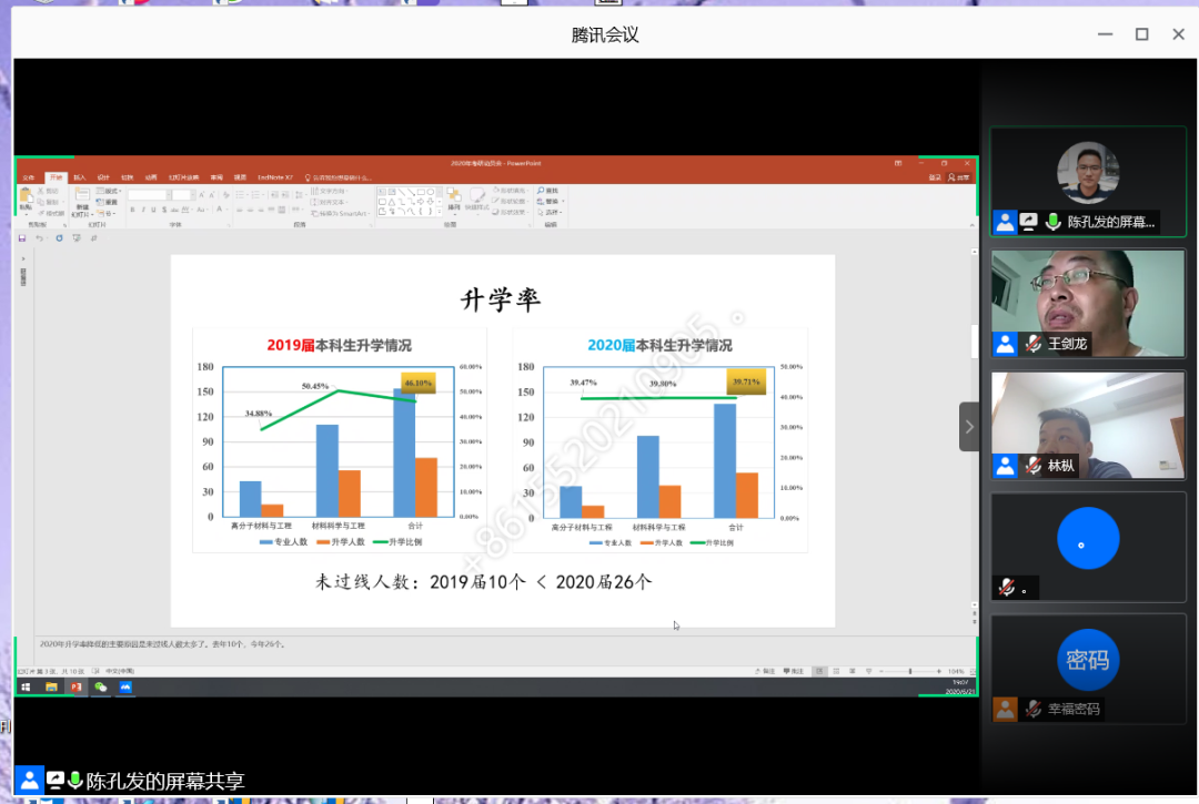 6月21日,院通过腾讯会议的方式举行了2017级考研动员会,出席动员会的有院党委副书记王剑龙老师,副院长林枞老师,院硕士学位点负责人、2017级3班班主任陈孔发老师,高分子系主任吕秋丰老师,材料系副主任徐峰老师辅导员王文栋老师,以及全17级本科生、部分18级、19级本科生。