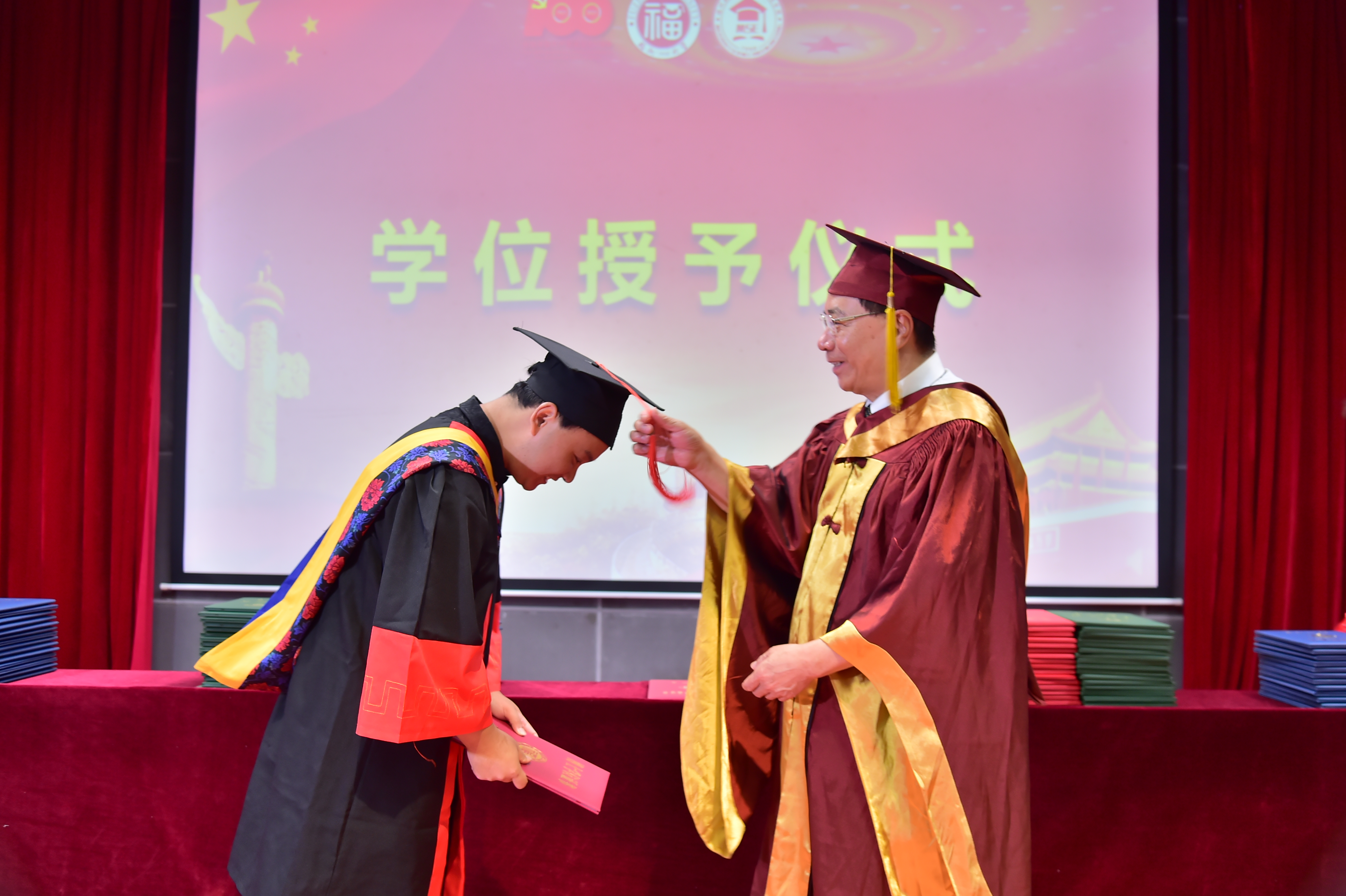 全体师生共唱《我和我的祖国》后,成人动漫 院长邹志刚院士、袁珮执行院长、林枞副院长、林梅金副院长为全体博士、硕士和本科毕业生颁发毕业证和学位证,执拨穗礼。