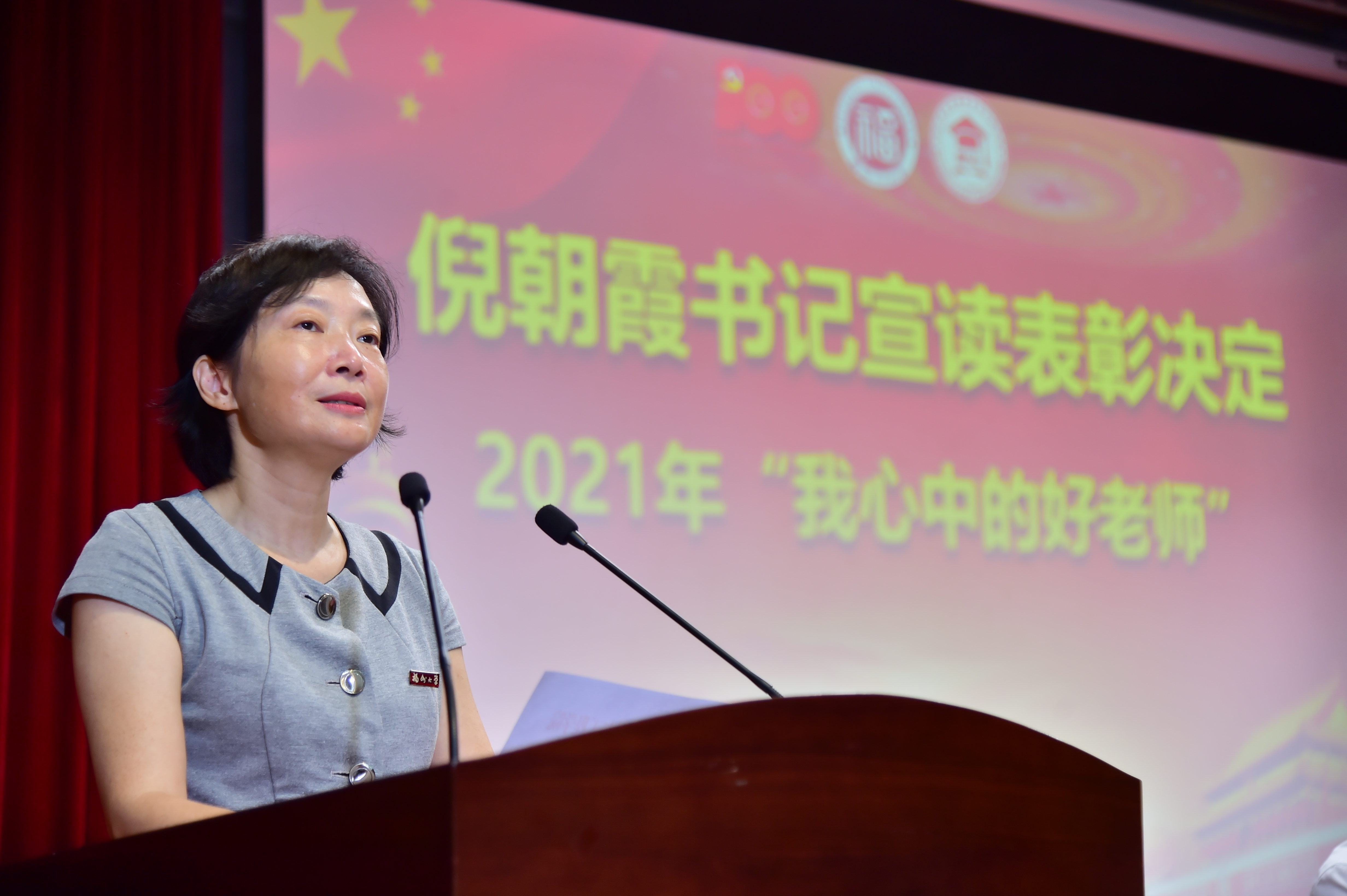 在倪朝霞书记宣读2021届优秀毕业生、2021届本科毕业生升学先进个人及2021年学院“我心中的好老师”表彰决定后,主席台领导先后为获得上述奖项的个人颁奖。学生代表为老师们献上花束,表达深深的感恩,并行谢师礼。