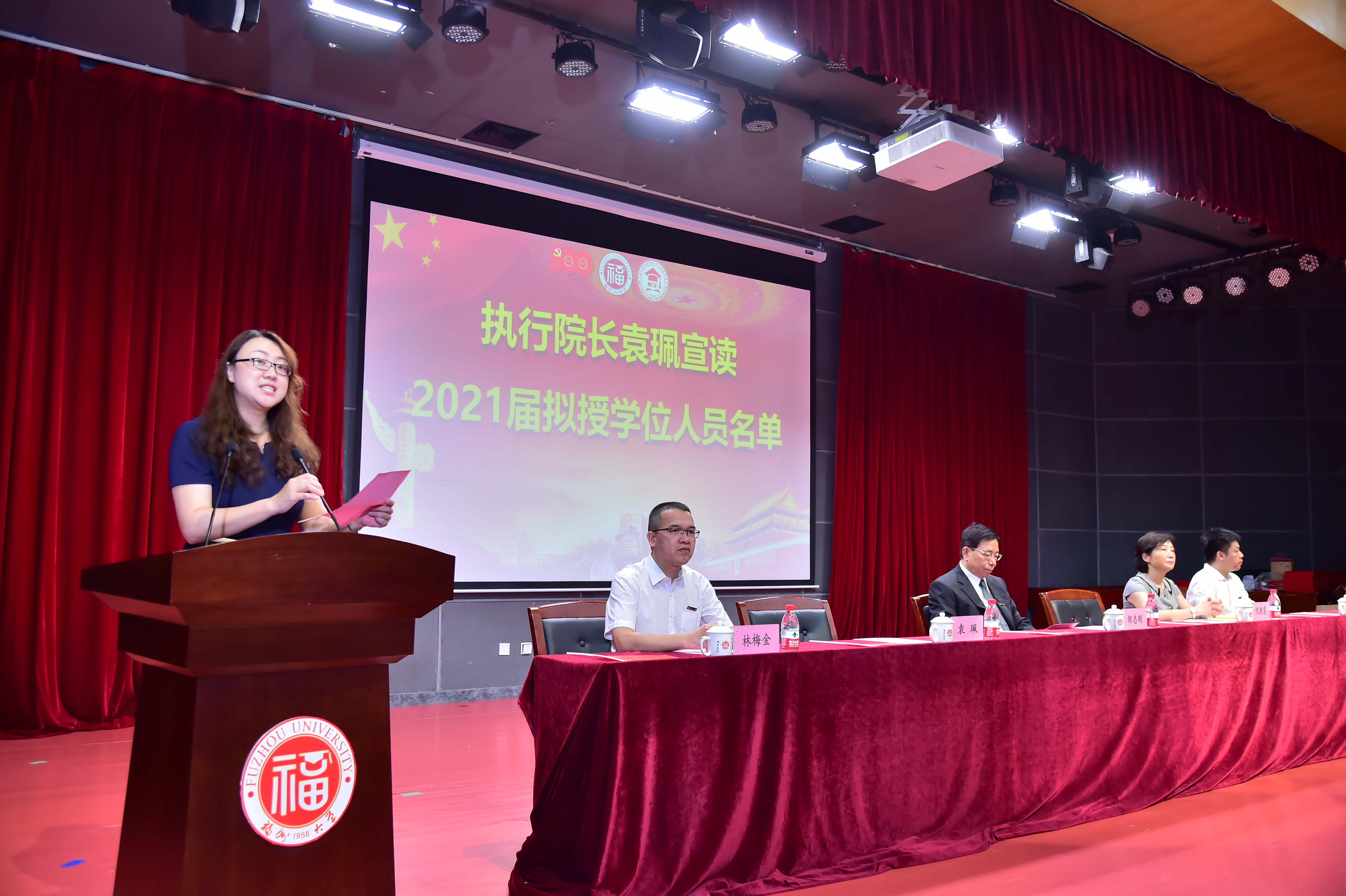 在全体师生共唱国歌后,成人动漫 袁珮执行院长宣读《2021届毕业生拟授学位人员名单》。一个个姓名掷地有声,肯定了同学们的青春奋斗历程。在场师生用掌声表达了对他们的祝贺。