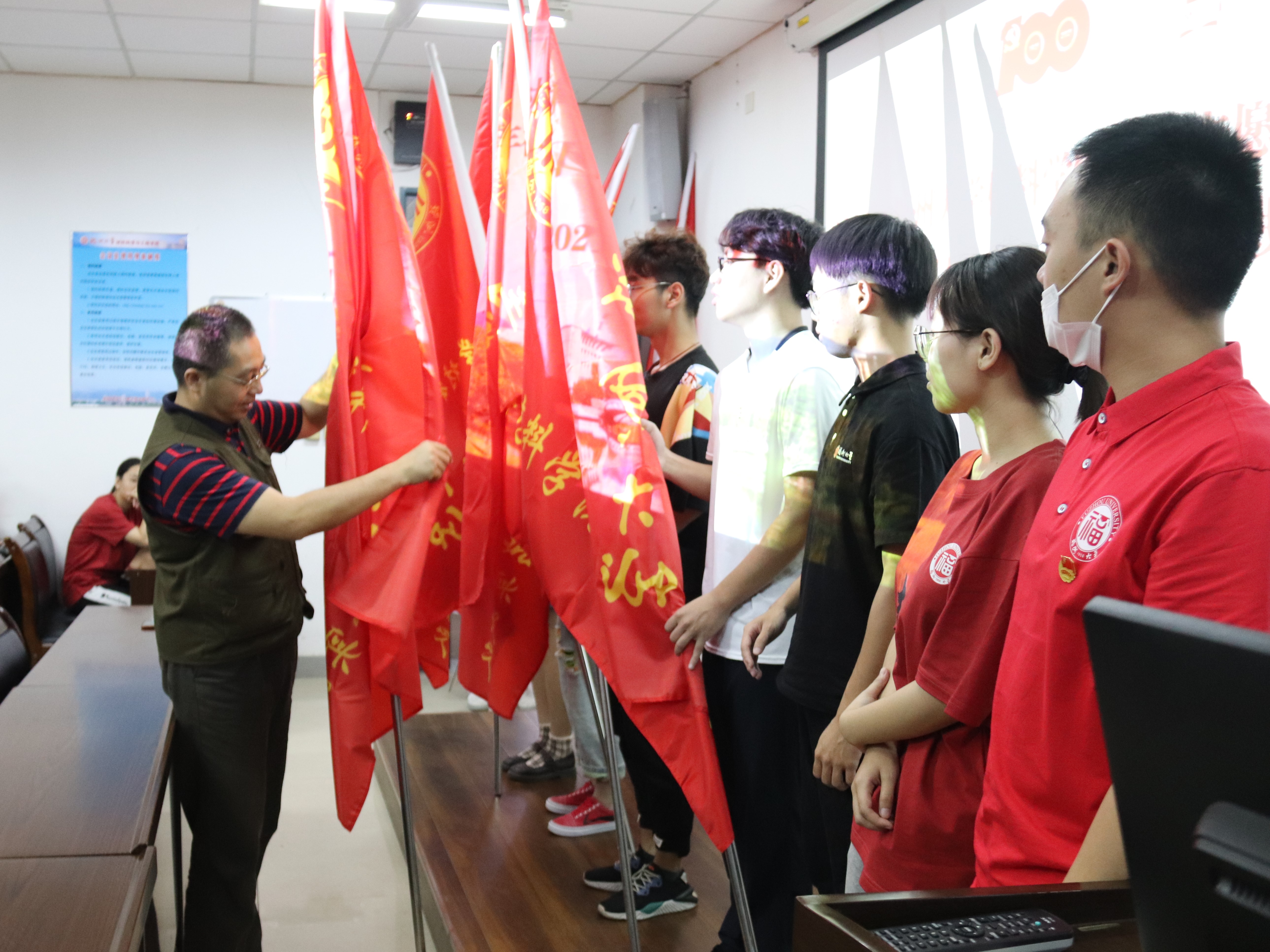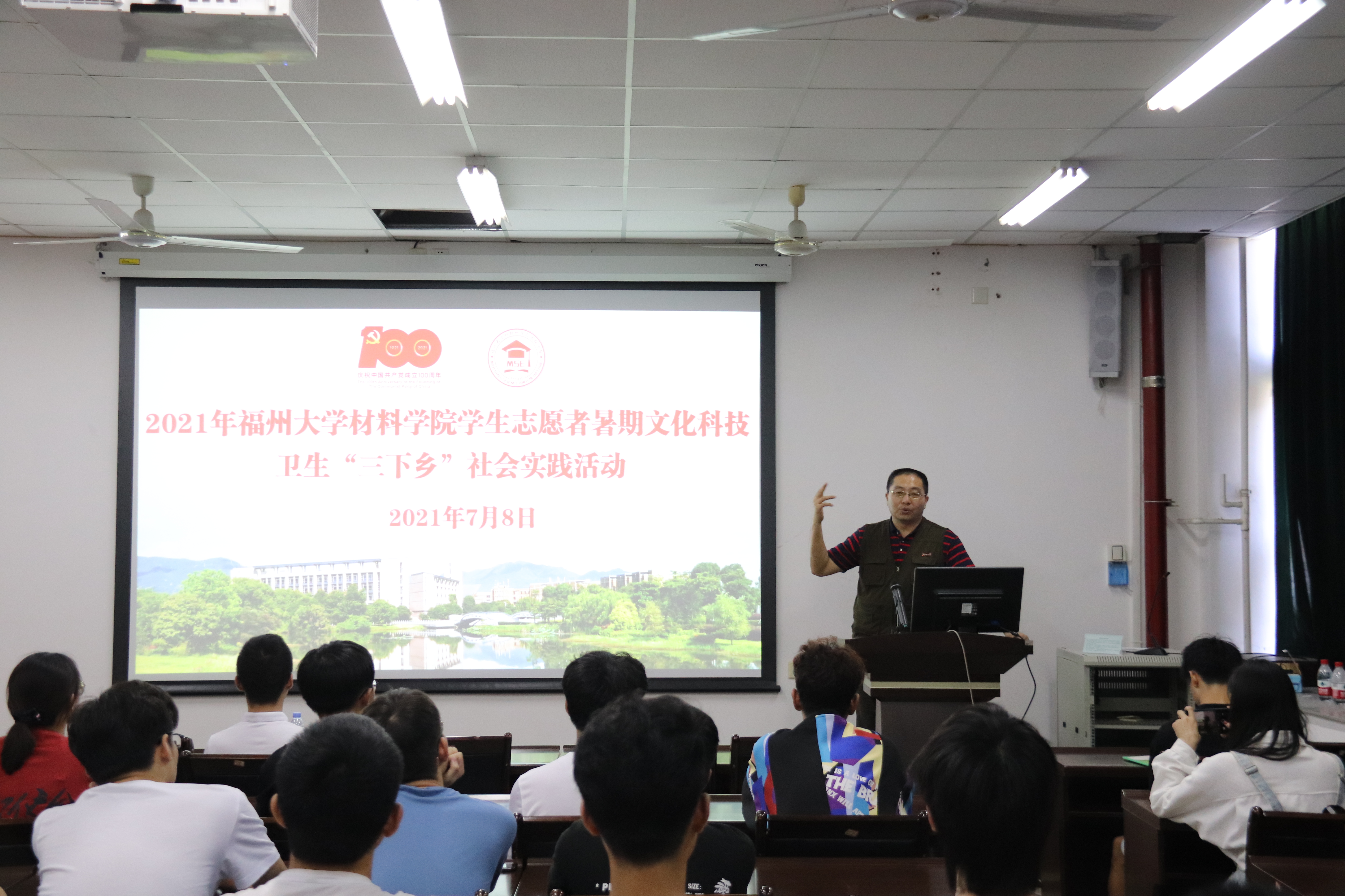 为激励成人动漫 实践队队员以饱满的精神状态奔赴各地开展社会实践活动, 7月8日上午,成人动漫 2021年学生志愿者暑期文化科技卫生“三下乡”社会实践活动出征仪式在材料楼404室顺利举行。成人动漫 党委王剑龙副书记、王文栋辅导员出席出征仪式。王文栋老师主持本次仪式,各实践队的队员悉数到场。