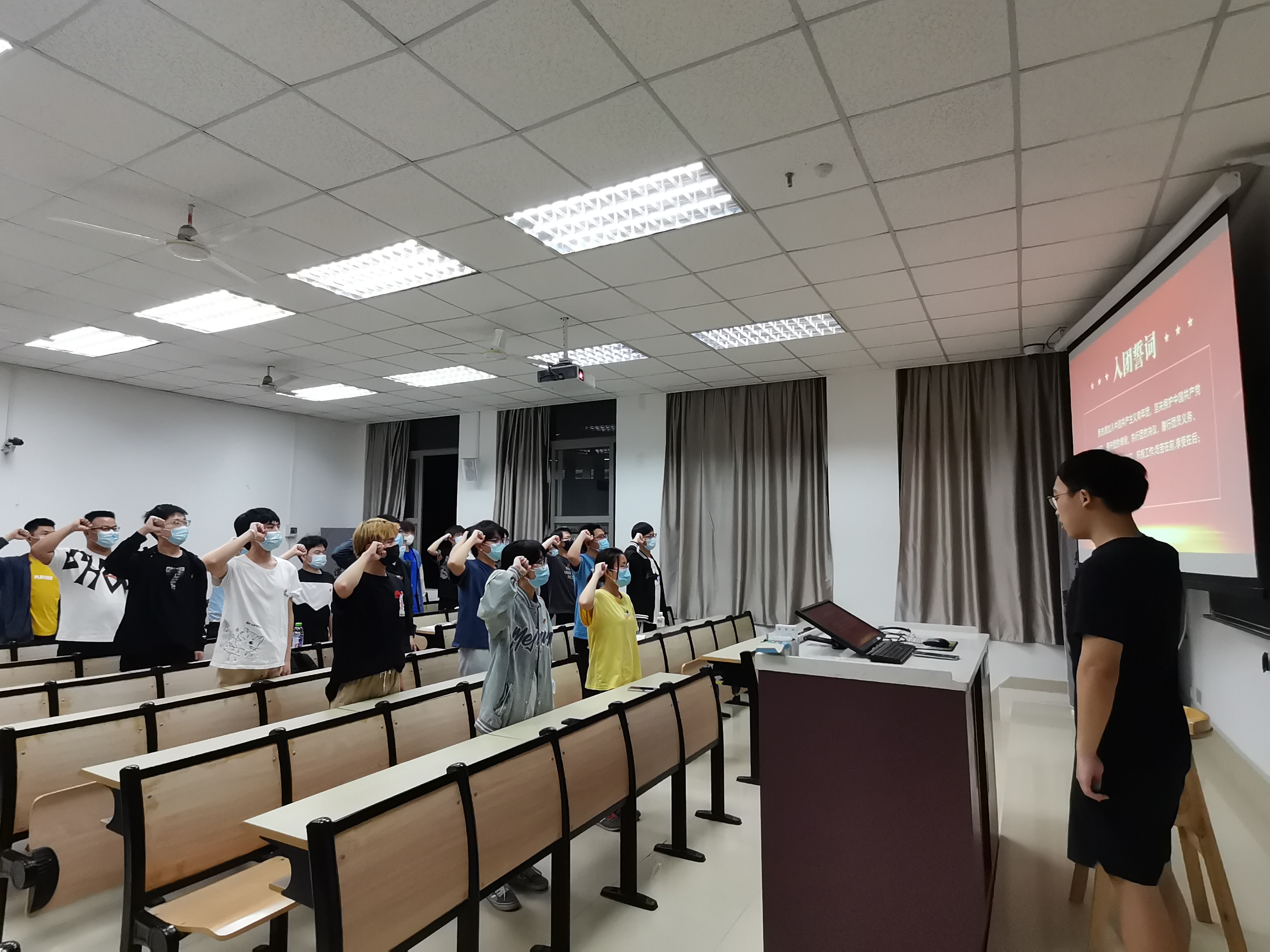 团课中,徐维晨同学以习近平总书记在浙江省人民大会堂为两千余名在杭高校师生作的题为“理想·价值·人文精神”的主题报告为例子,介绍了习近平总书记当时的亲身经历,讲述了信念、人生价值、“四股气”(即志气、勇气、正气、才气)的重要性,呼吁青年团员要筑牢理想信念根基,体会人生真正价值,要有一定精气神,将自身与社会、民族相结合。为将爱国主义融入本次团课,最后,在徐维晨同学的领誓下,全体支部成员重温入团誓词,用铮铮誓言表达青年之心,践行青年担当唤醒入团时的那份真诚与热情。团课结束后,大家纷纷表示,作为当代青年和“双一流”高校的学生,要时刻把爱国和奋斗紧密结合起来,努力为实现中华民族伟大复兴的中国梦贡献智慧和力量。